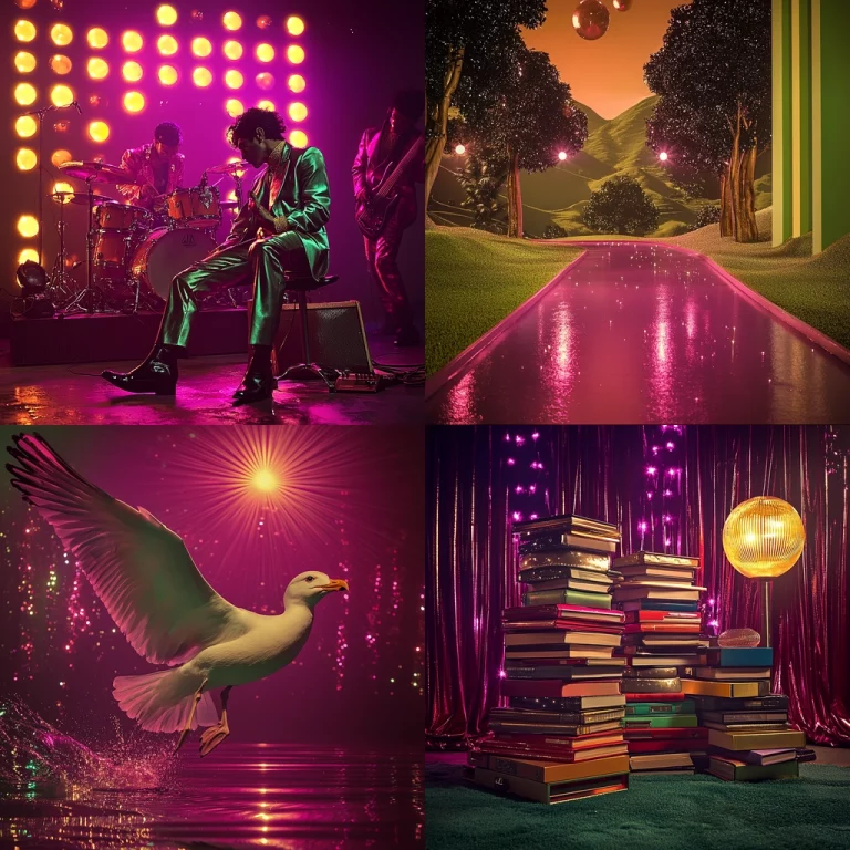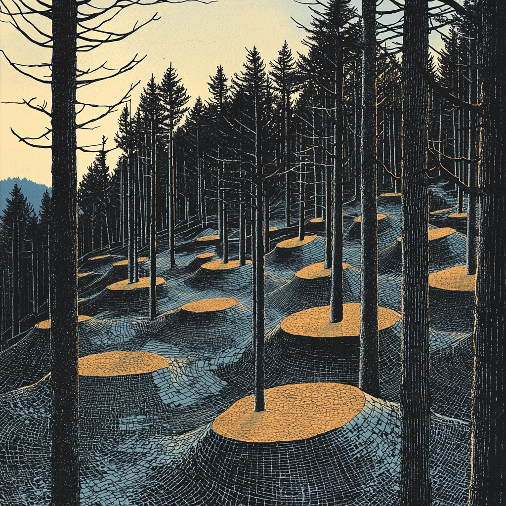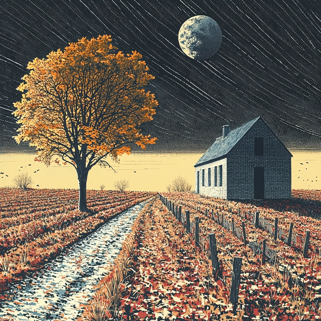 Dark blue and gold with sharp contrasts create dynamic landscapes.