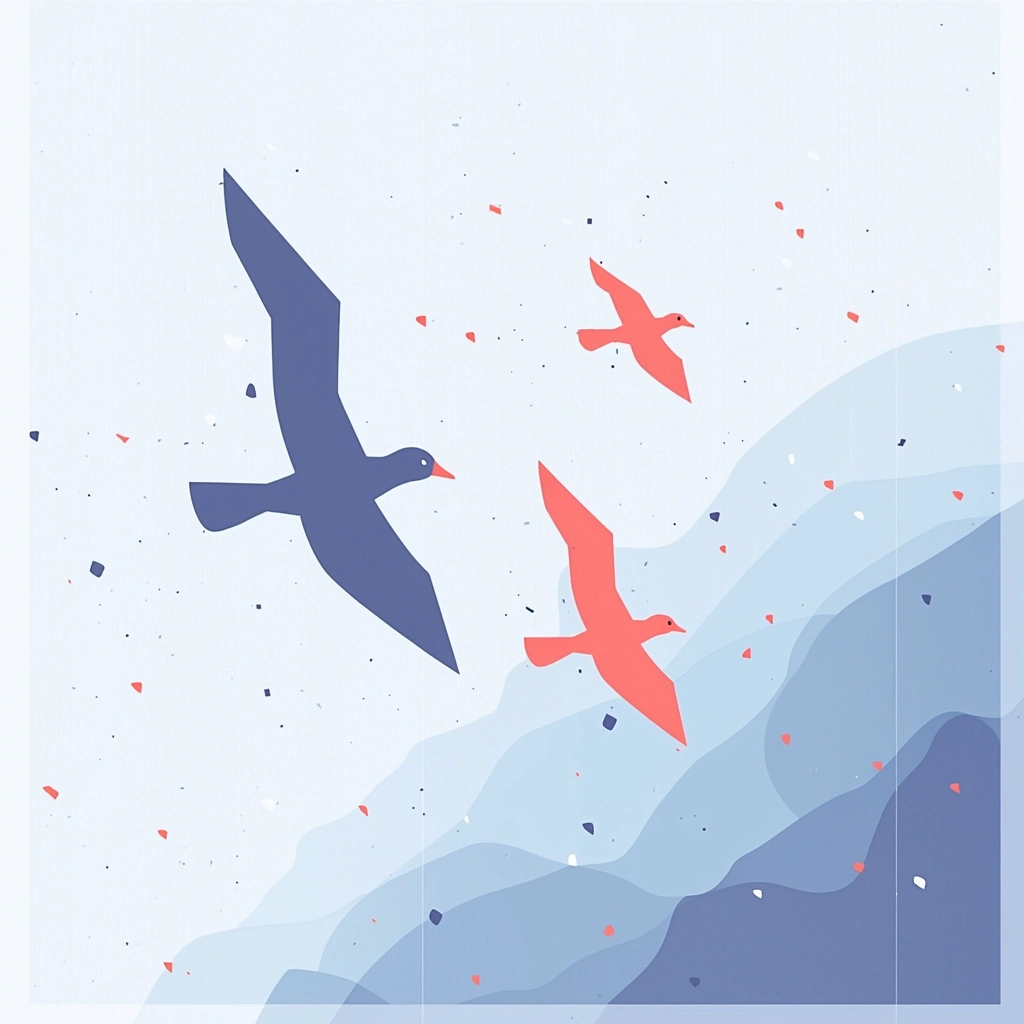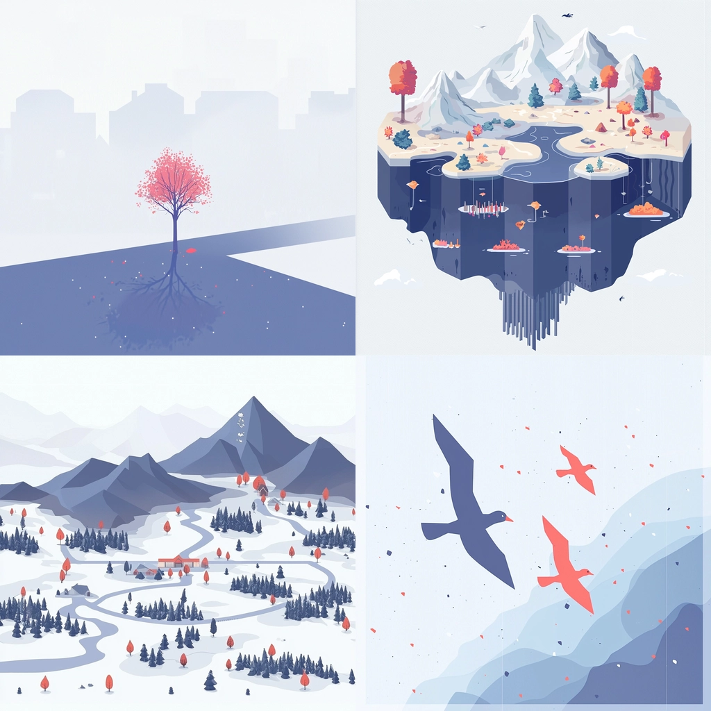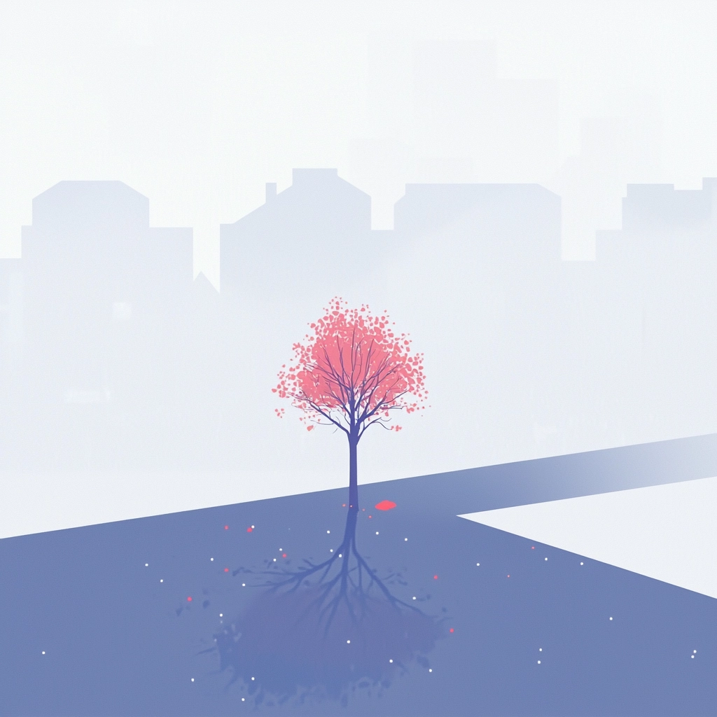 The composition uses muted colors with an emphasis on simplicity and negative space.