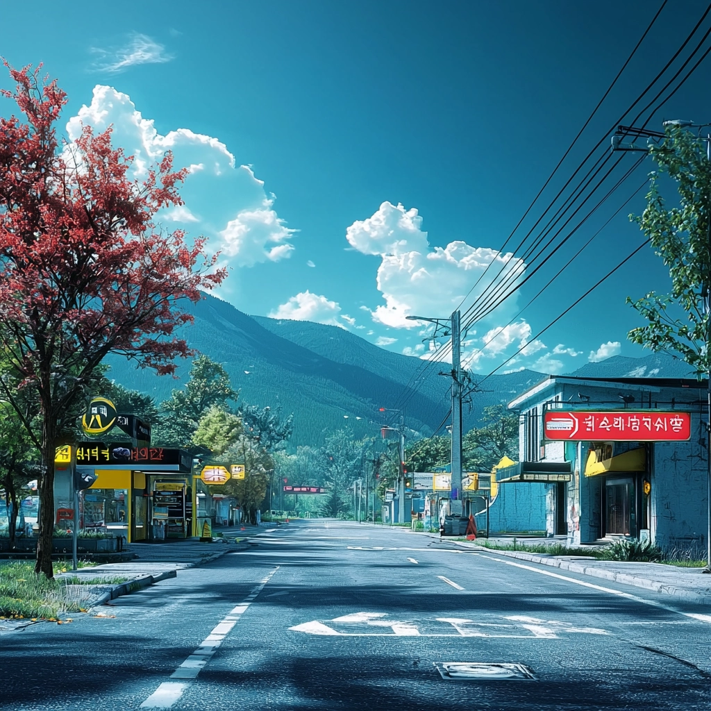 The composition contrasts bright cyan with deep red for an urban visual effect.