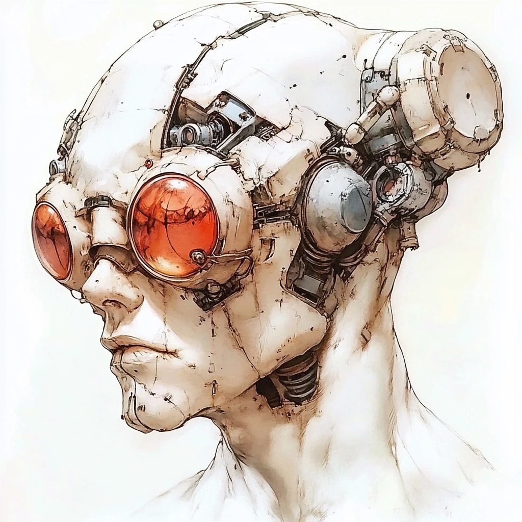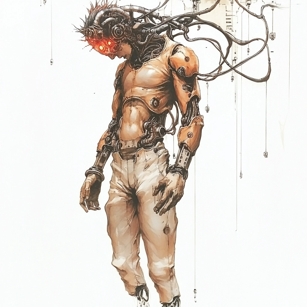Dynamic blend of organic and mechanical elements enhanced by rich watercolor shading.