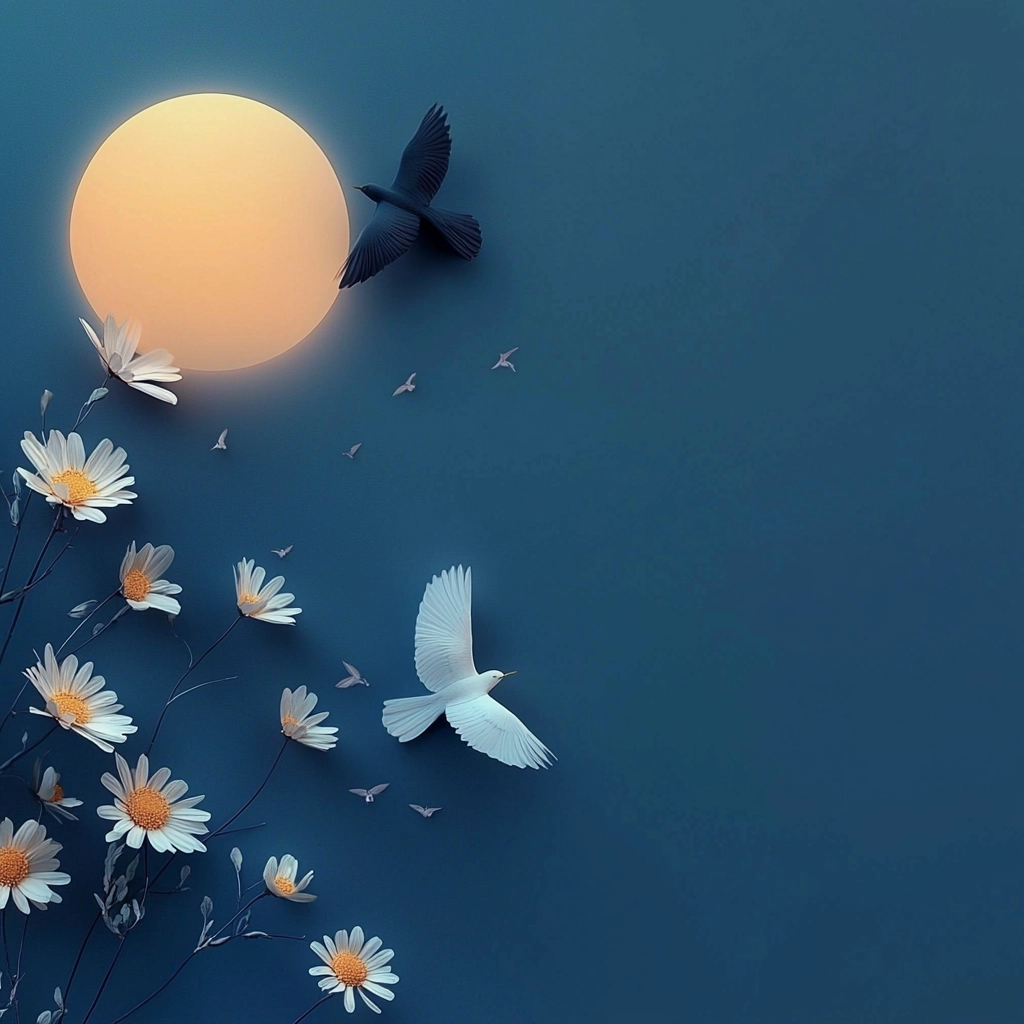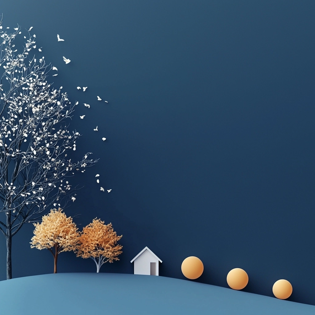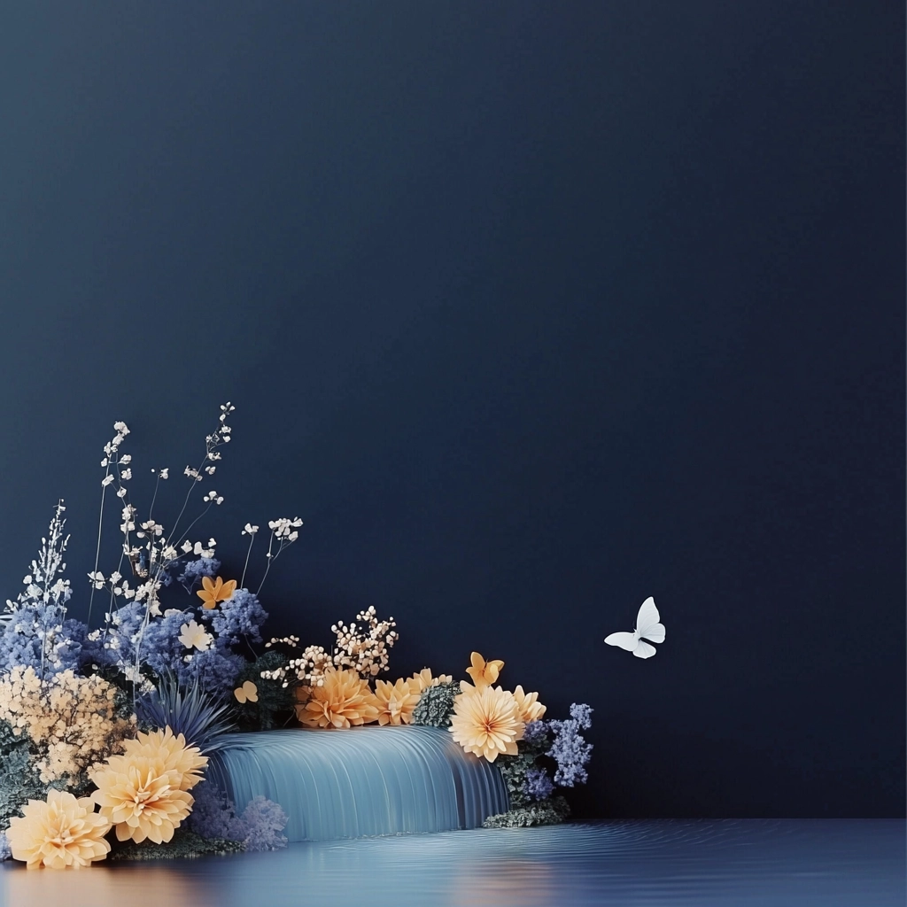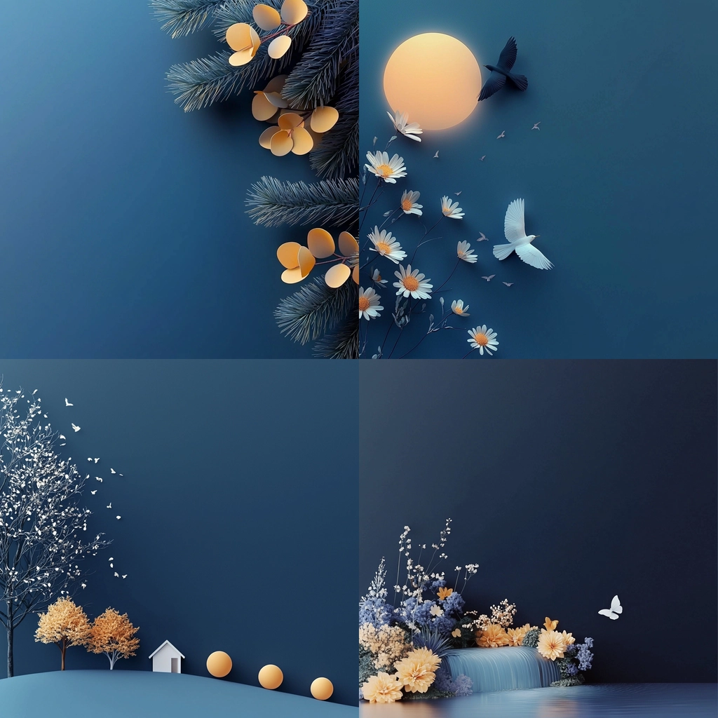 A harmonious interplay of dark blue and gold highlights with delicate shading and subtle gradients adds depth and sophistication.