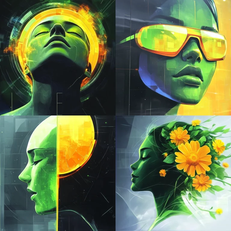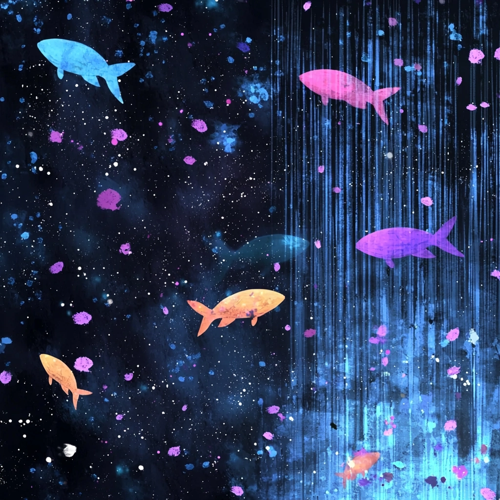 Contrasting vivid hues and dark tones create depth with balanced composition.