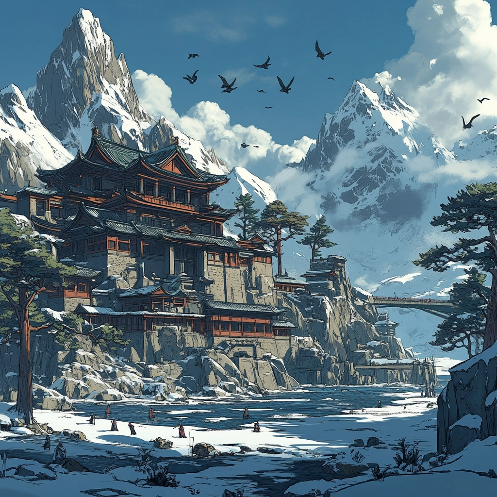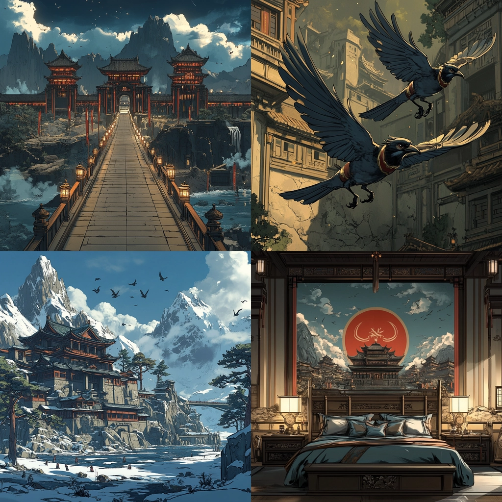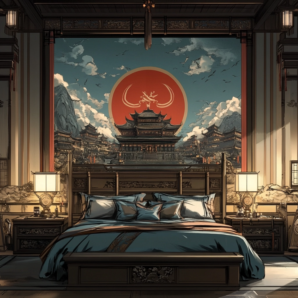 The use of dark blue lighting highlights the depth and intricacies of classic architectural details. Shade variations create a strong sense of dimension, while the meticulous textural elements provide a realistic and tactile impression.