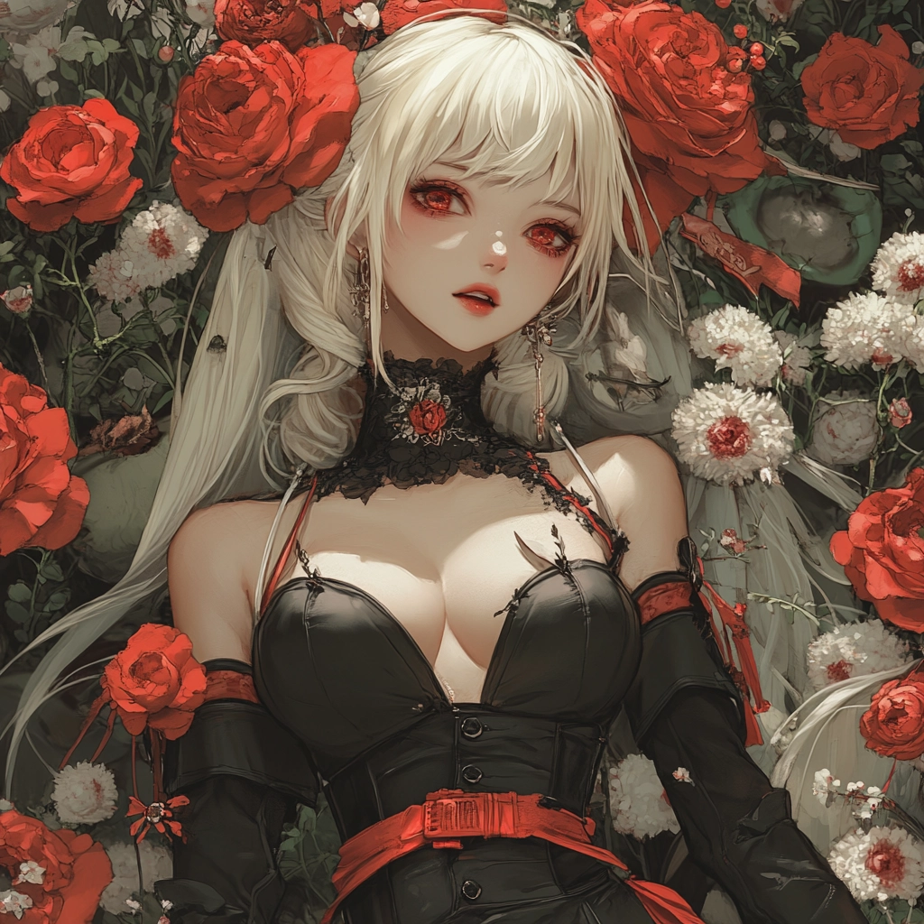 A striking contrast of dark tones with vivid red accents showcasing intricate details.