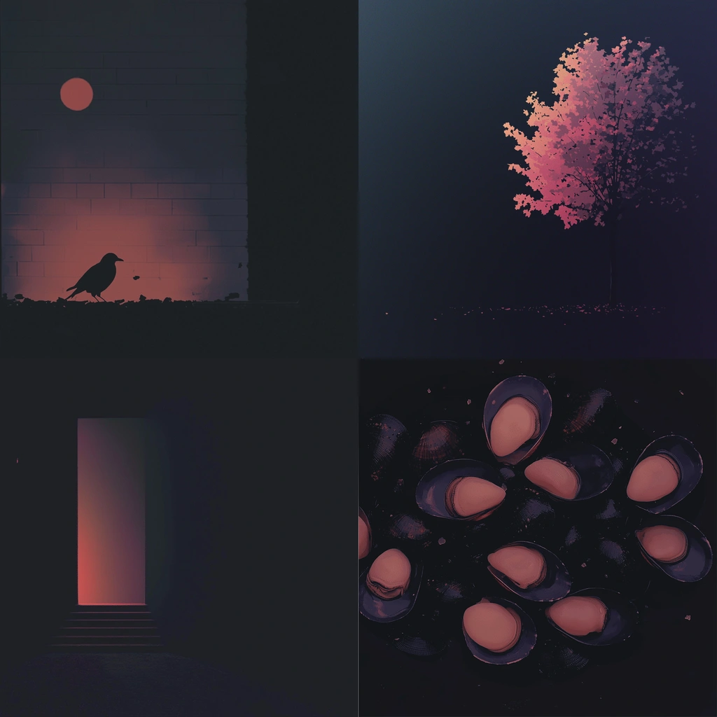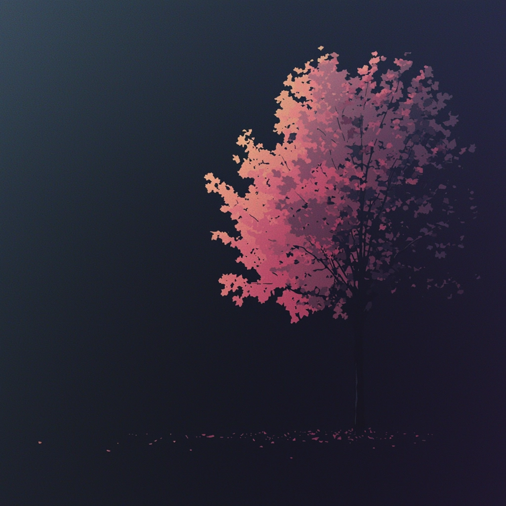 A juxtaposition of dark silhouettes against vivid pinks, creating a bold contrast.