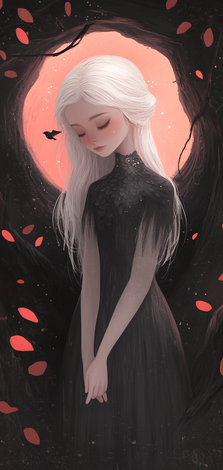 The lighting plays subtly with darkness, highlighting soft pinks amid gray tones. There's a soft diffused approach to lighting, with red hues creating a gentle yet vivid contrast. Textures appear velvety and smooth.