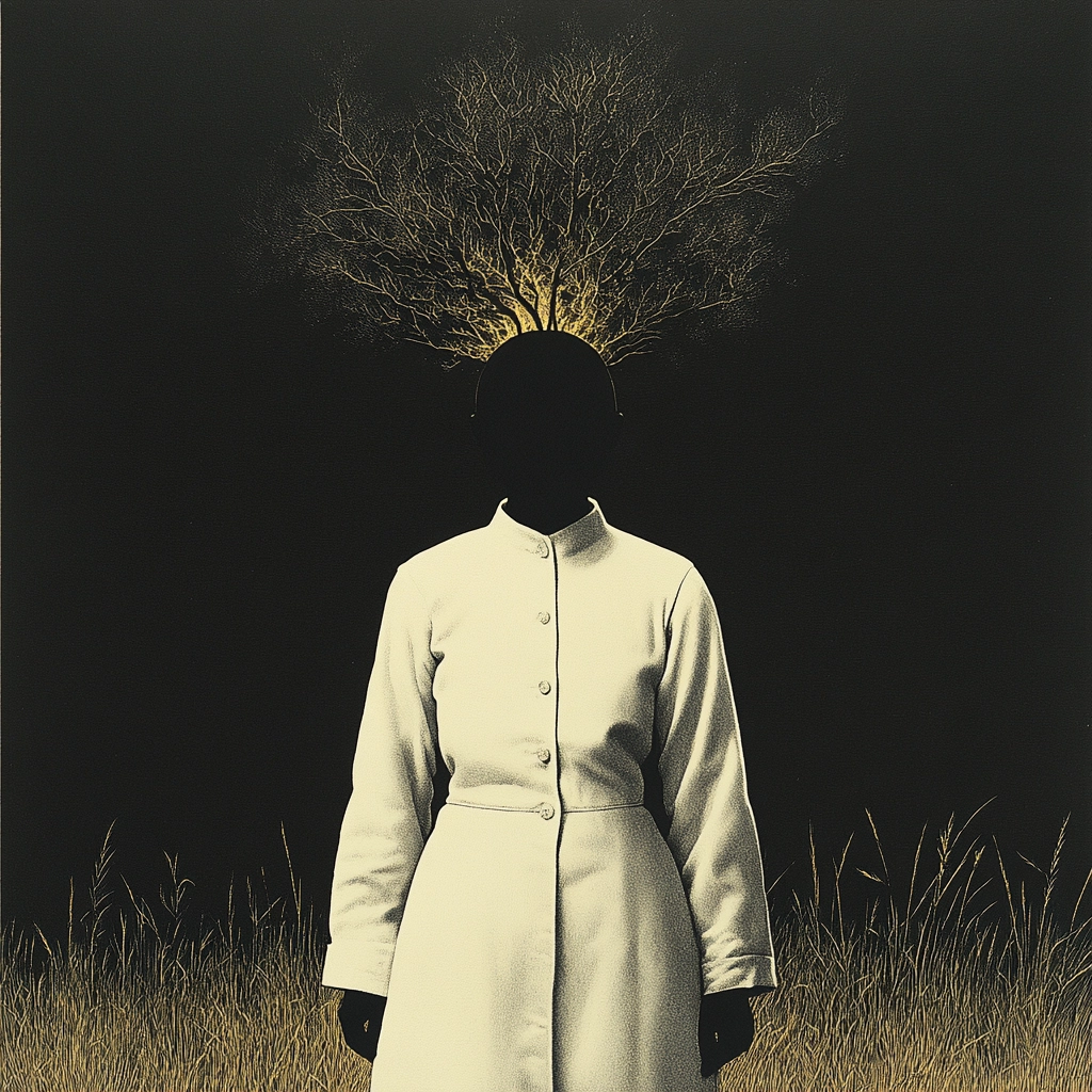 Highly contrasted scenes featuring dark silhouettes against a golden background.
