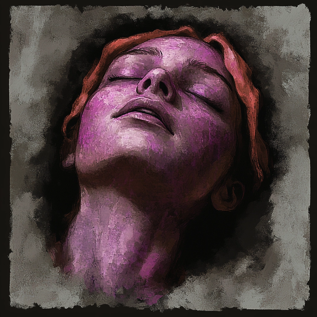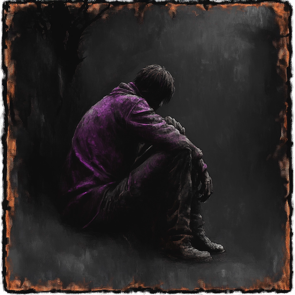 A dark, textured portrayal using contrasting tones and muted colors.