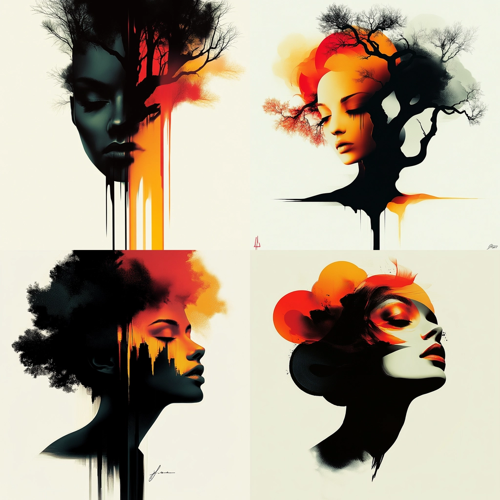 Bold contrast between vivid colors and deep shadows creates a striking silhouette effect.