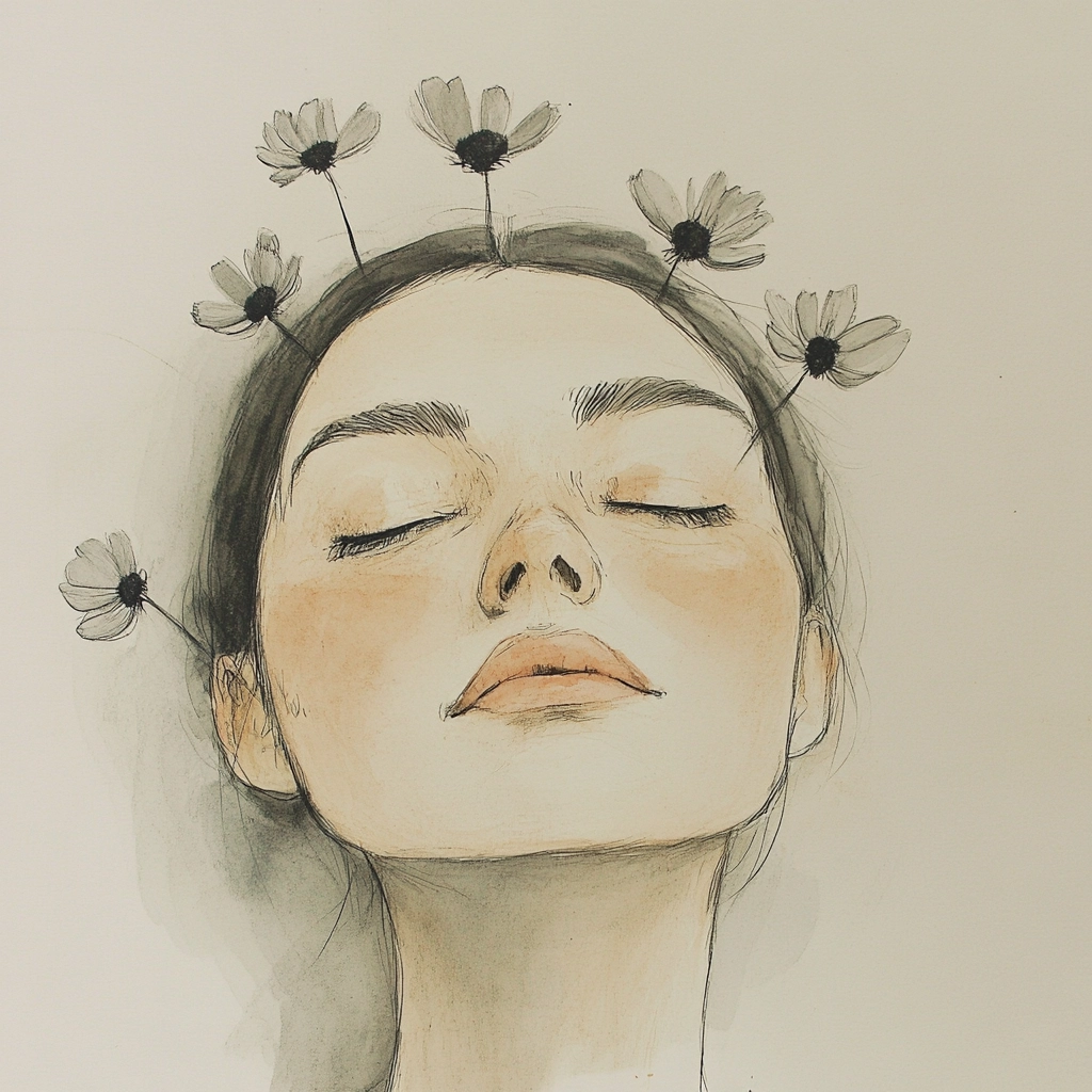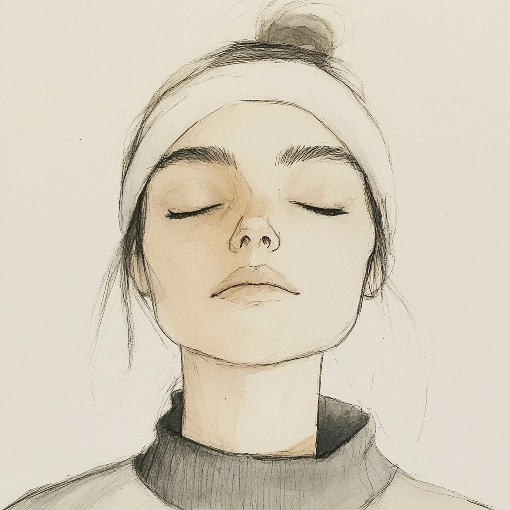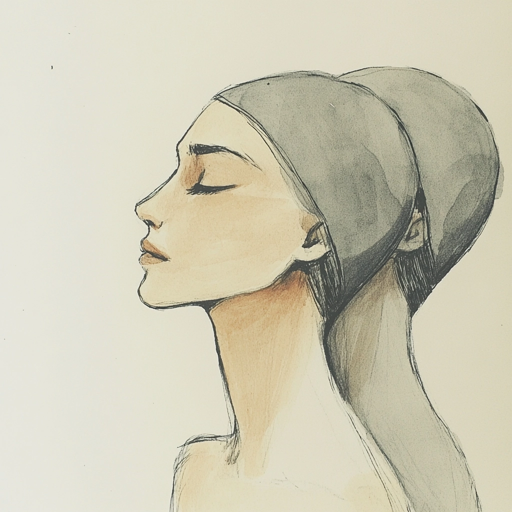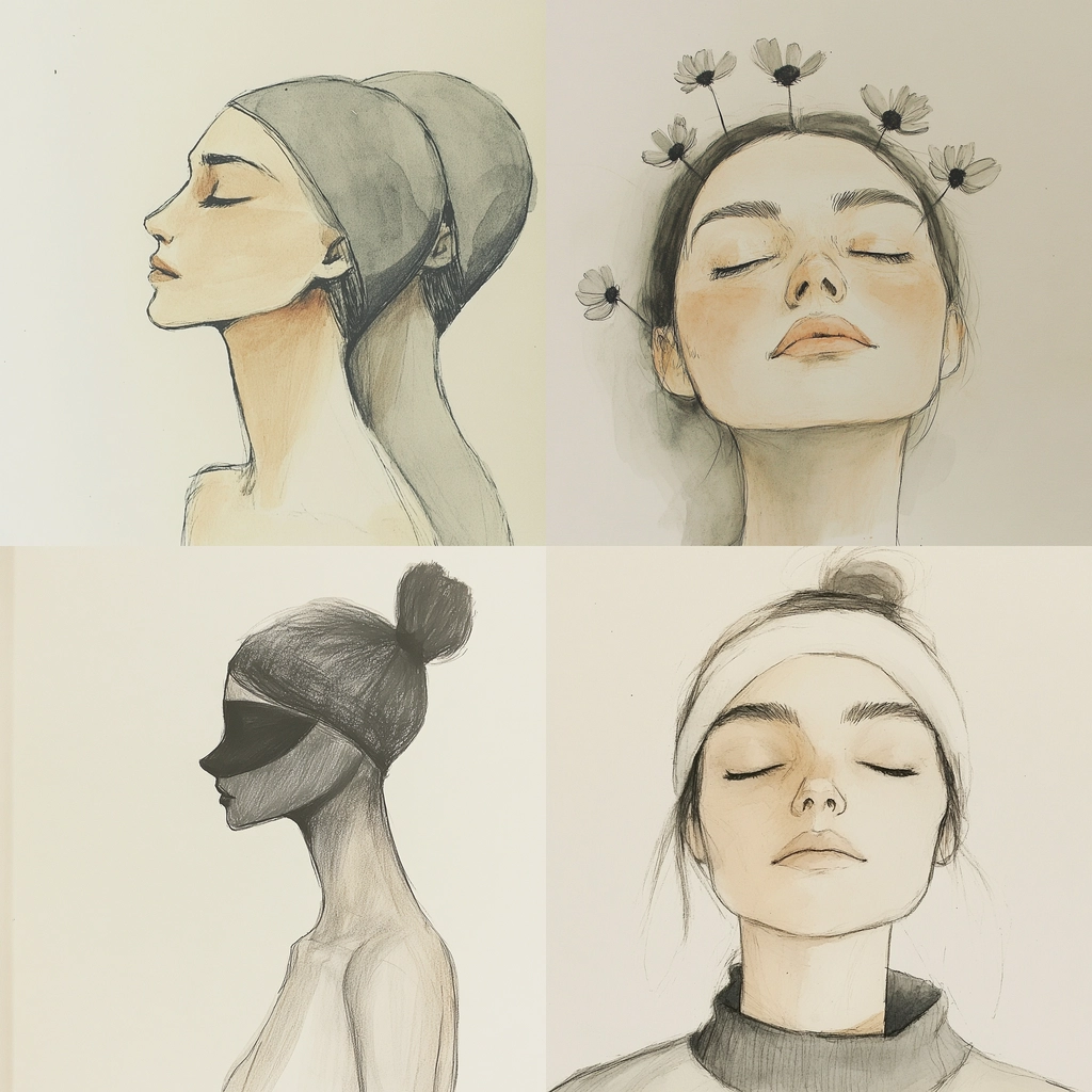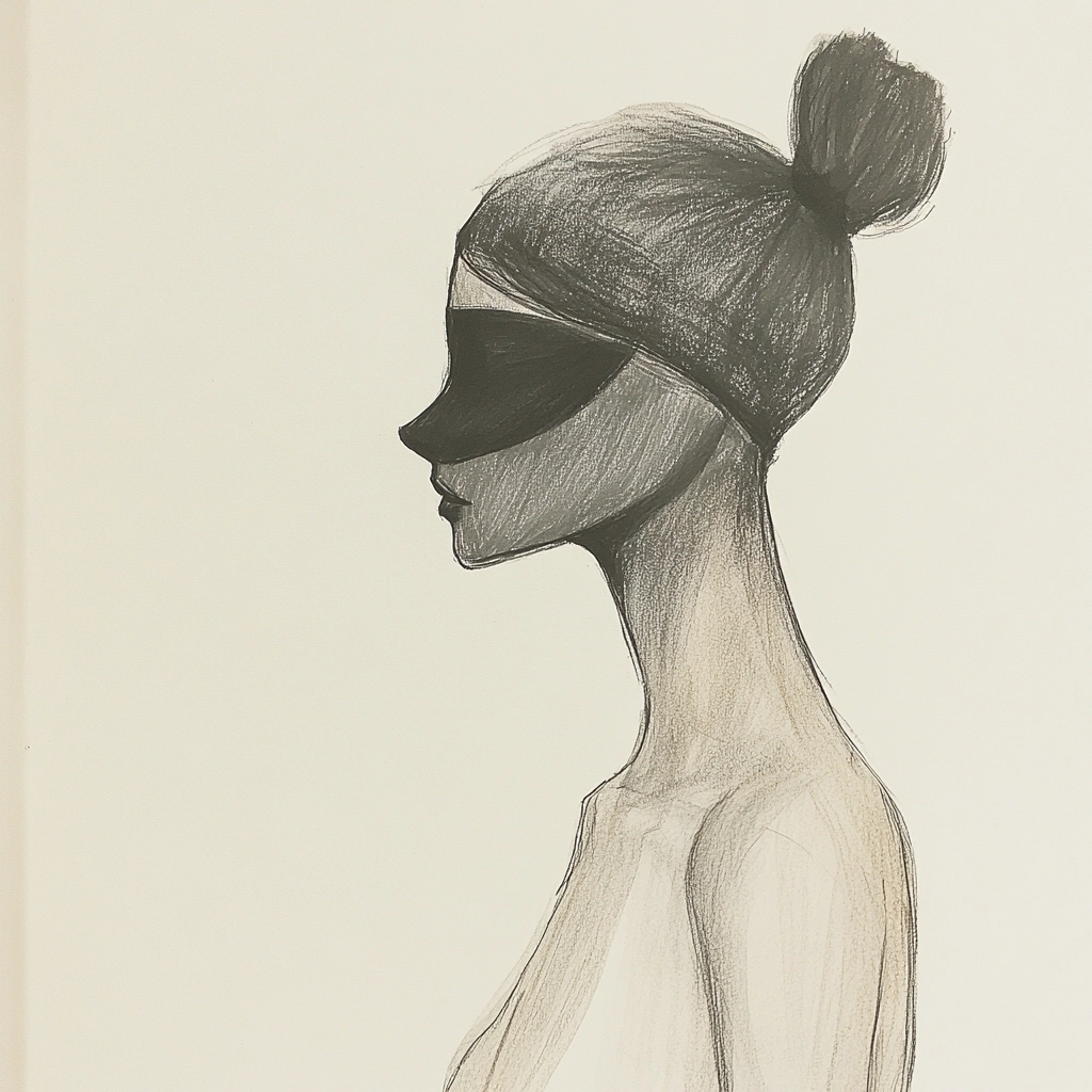 Soft lighting creates gentle transitions across textured surfaces between graphite and light washes. Composed with restrained color use, the spatial arrangement conveys simplicity by focusing on contour and material subtlety.