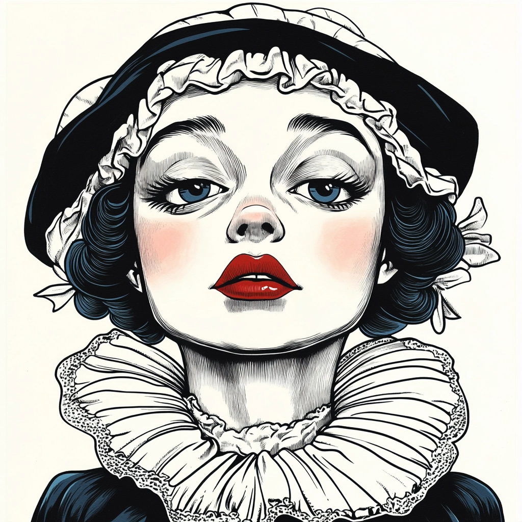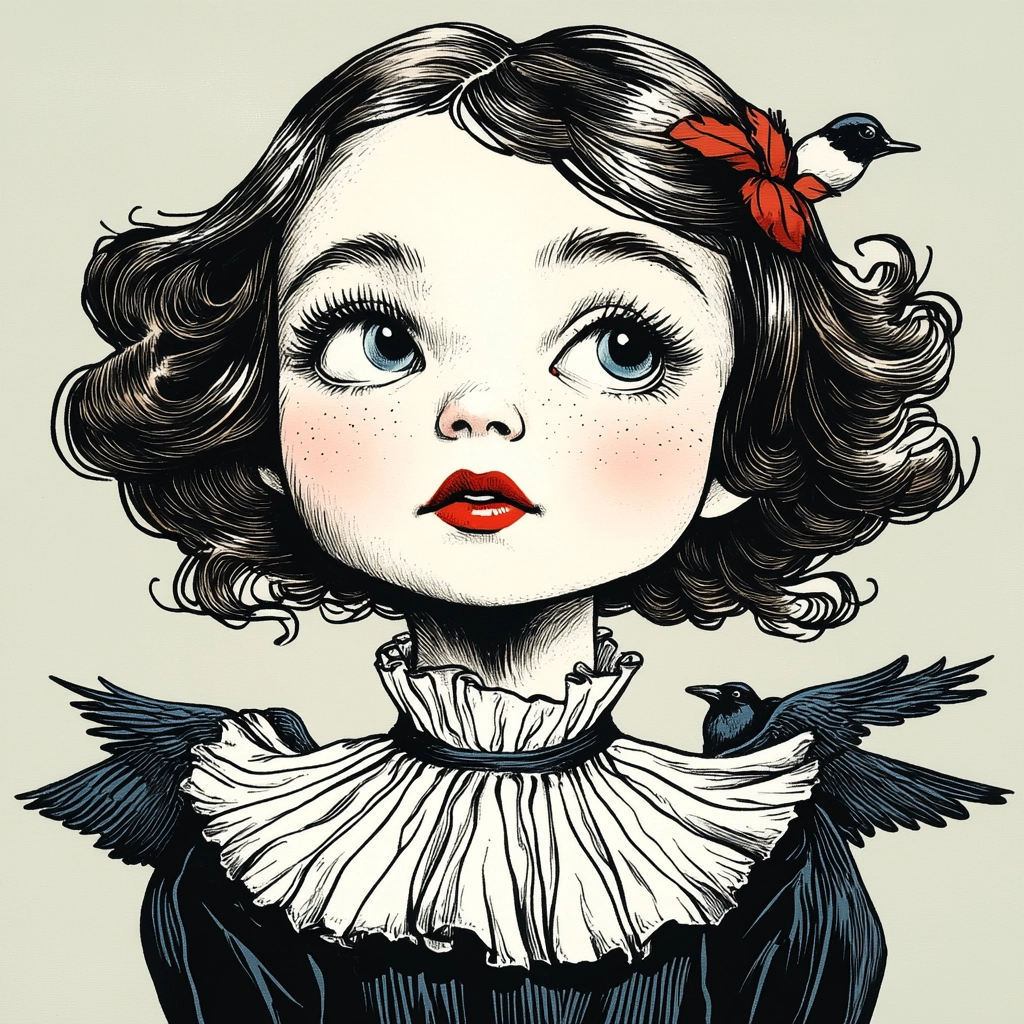 Intricate line work combines with strong contrast elements.
