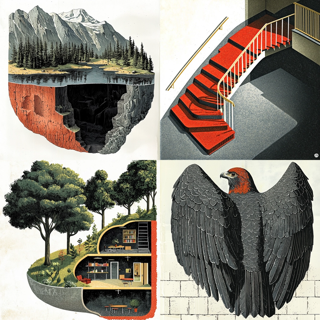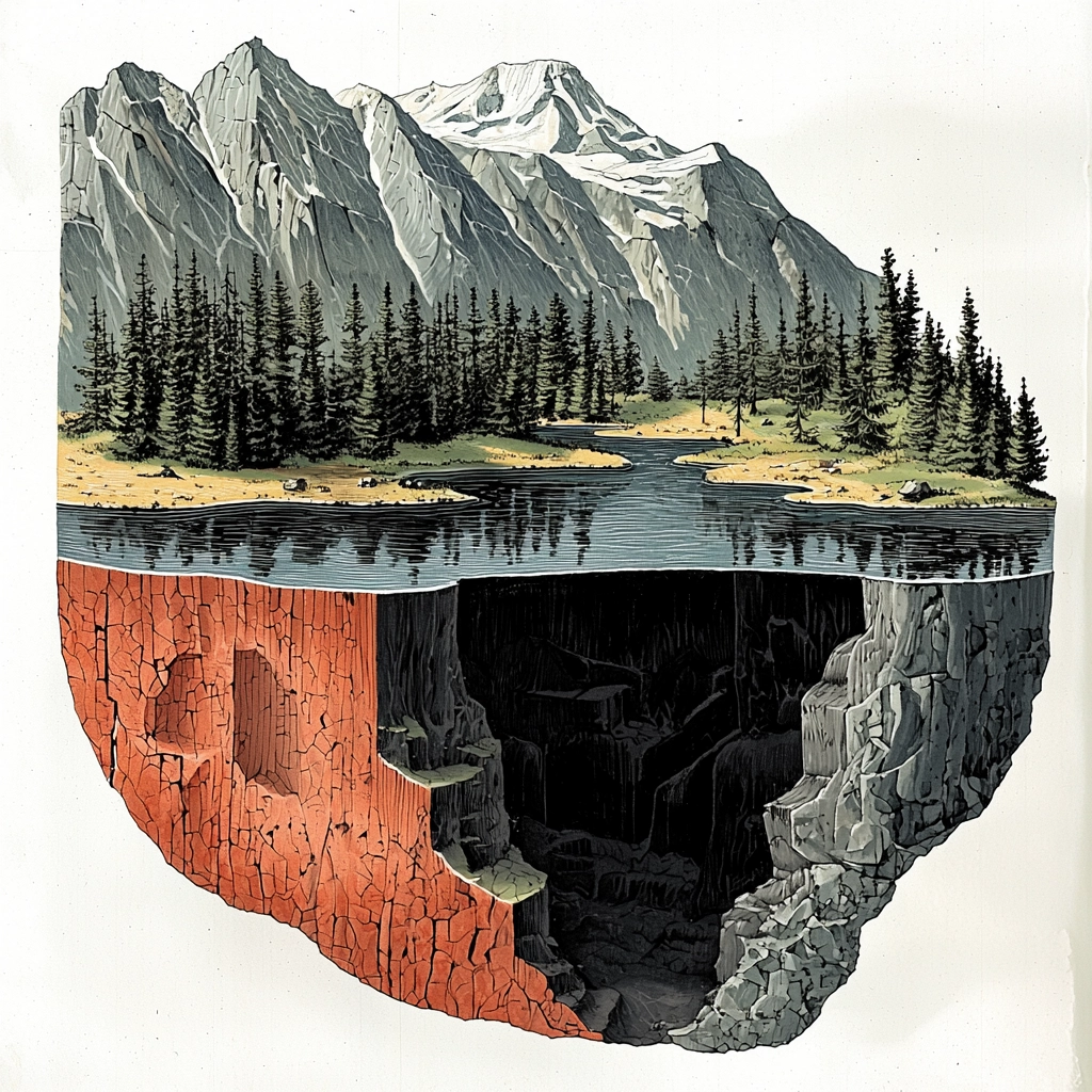The illustration uses strong contrasts and earthy tones to build visual depth.