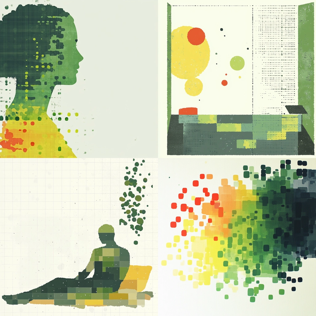 A geometric blend of dots and gradients form vibrant spatial compositions.