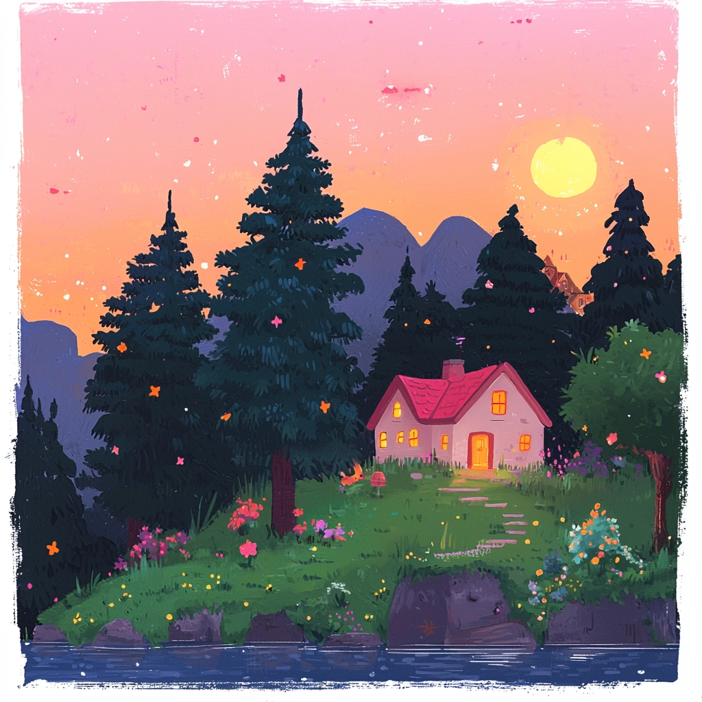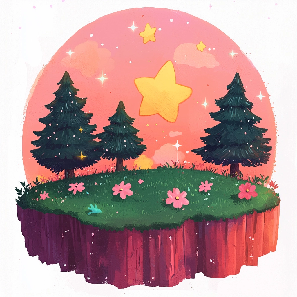 Soft lighting accentuates the gentle pastel colors, giving them a soothing character. Distinct layering of elements is achieved through light contrasts and subtle gradients, providing depth and texture. Details are delicately rendered, showing care in each brushstroke.