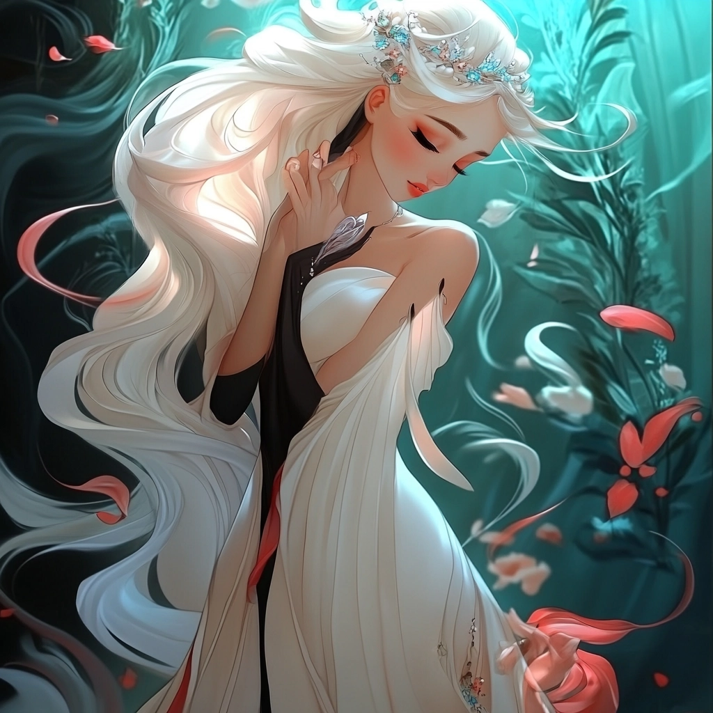Soft lighting illuminates with a gentle glow, emphasizing the fluidity of the forms. The pastel color palette is expertly balanced, creating harmony and depth. The sense of space is enhanced by light diffusion, while textures are depicted with a smooth, barely perceptible blend, capturing a sense of sublime grace.