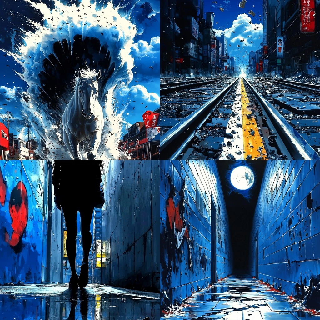 Blue, Black, White