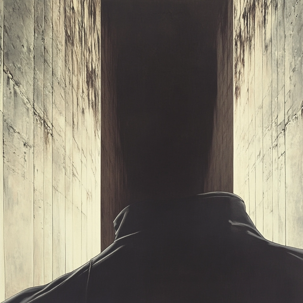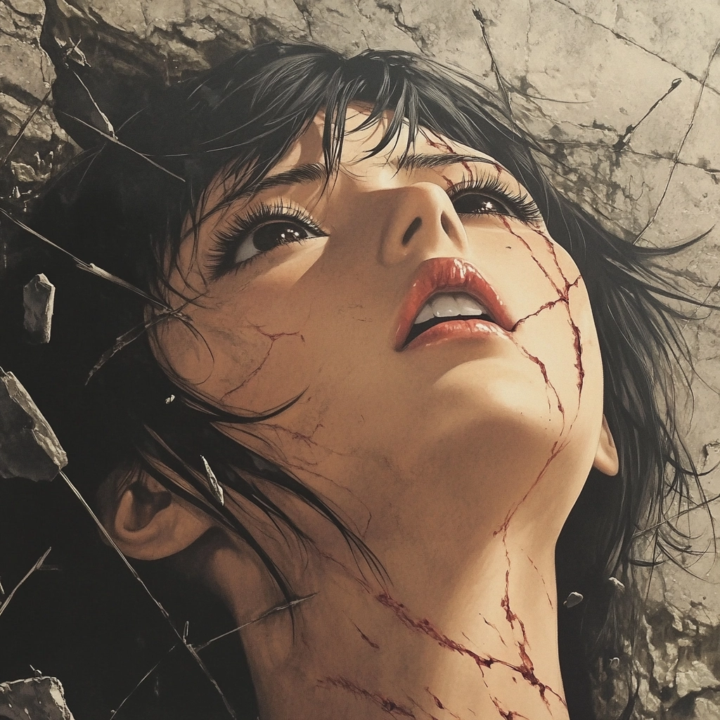 The composition showcases dynamic forms with deep shadows, offering a dramatic perspective through realistic textures.