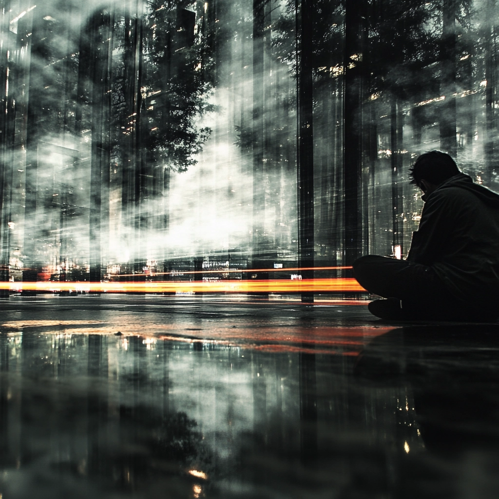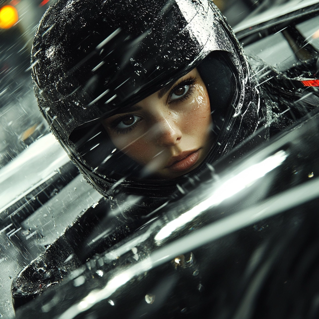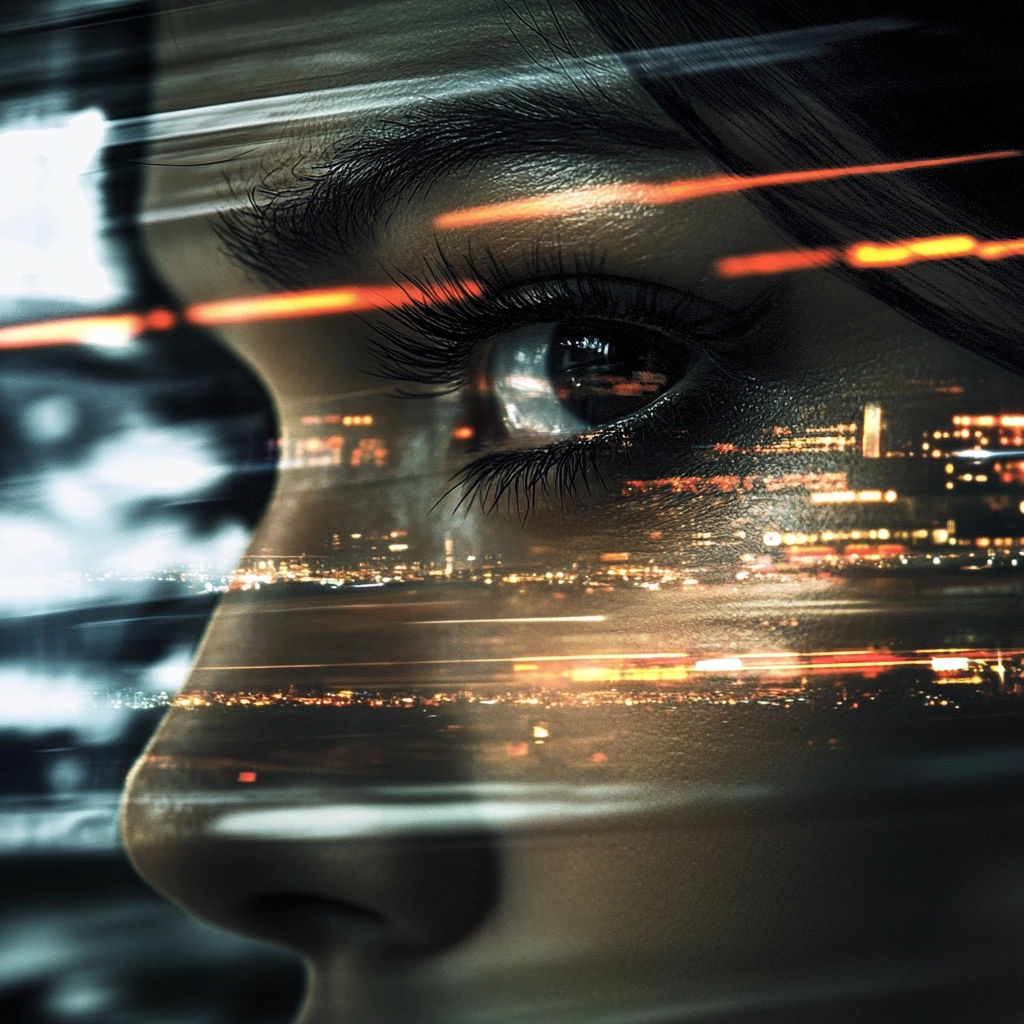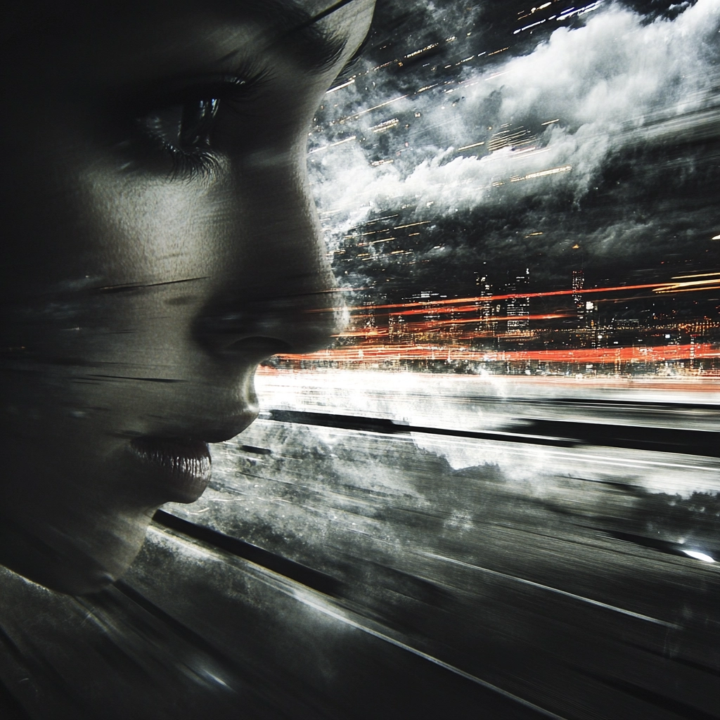 Lighting effects create a powerful dynamic of movement, enhancing the reflective surfaces with an urban sense of space. The textures are sharp, emphasized by contrasting colors, which offers a sleek, polished visual experience.