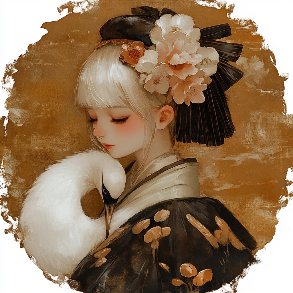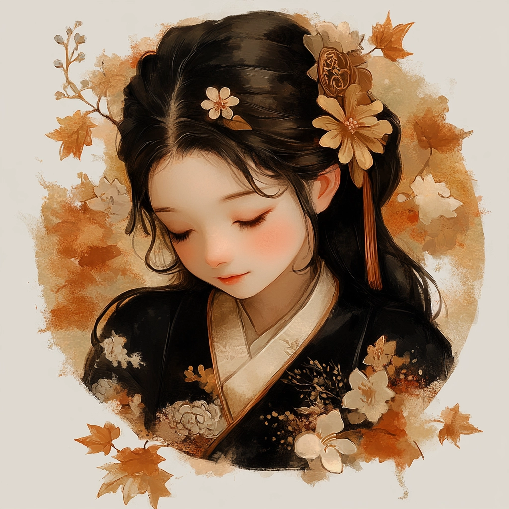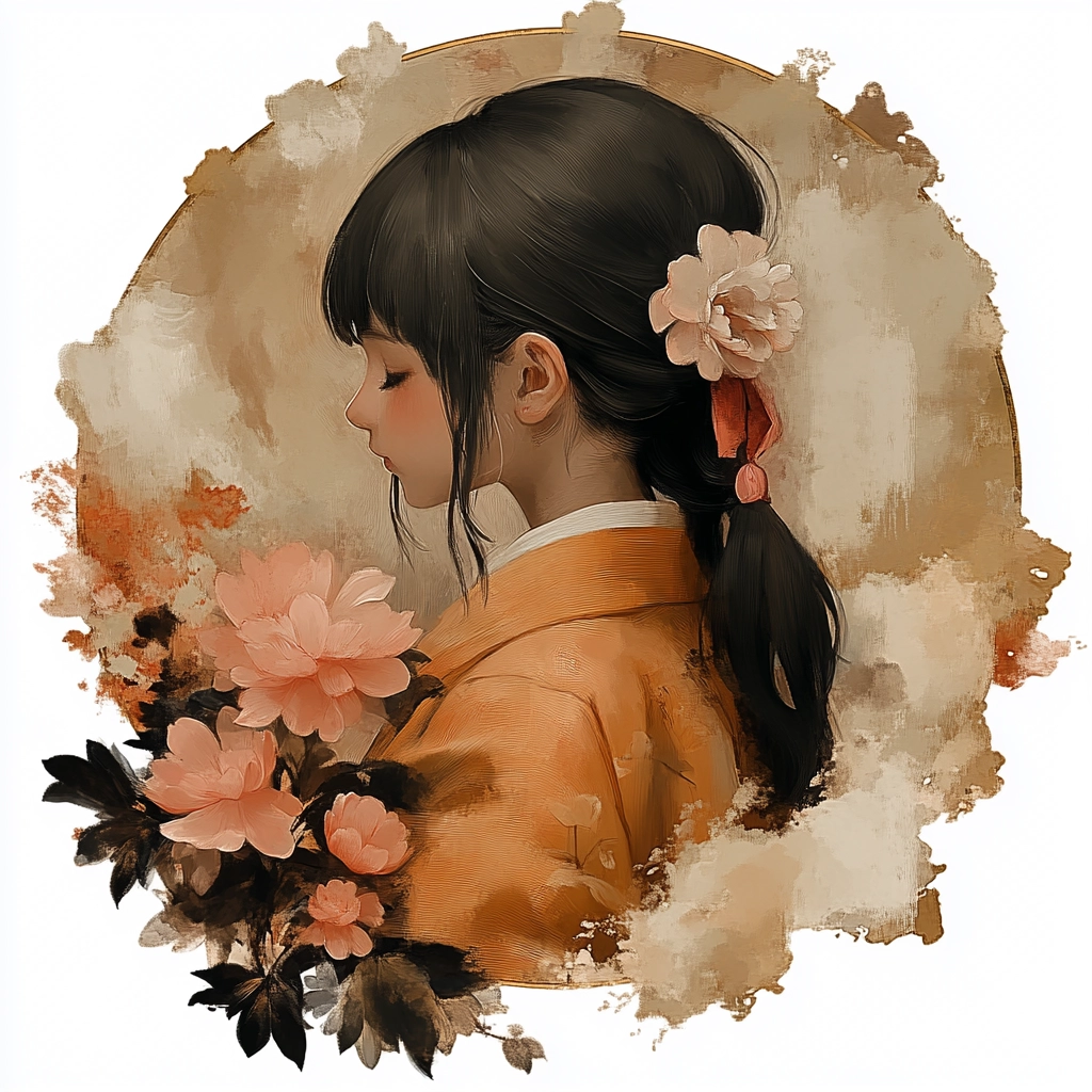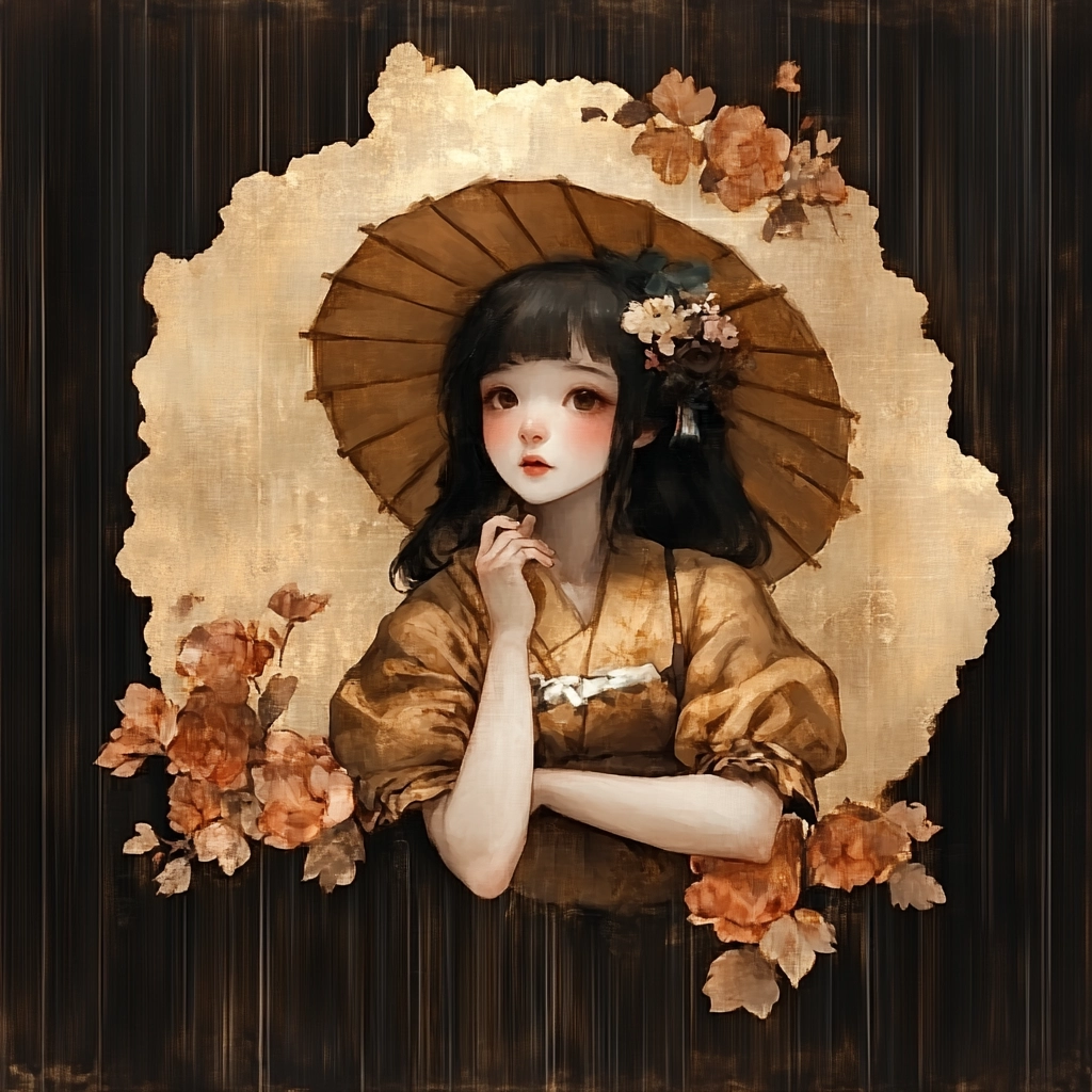 The artwork employs soft lighting, accentuating the rich, earthy color palette. Subtle textures highlight floral motifs, while balance is created through soft, rhythmic spatial compositions.