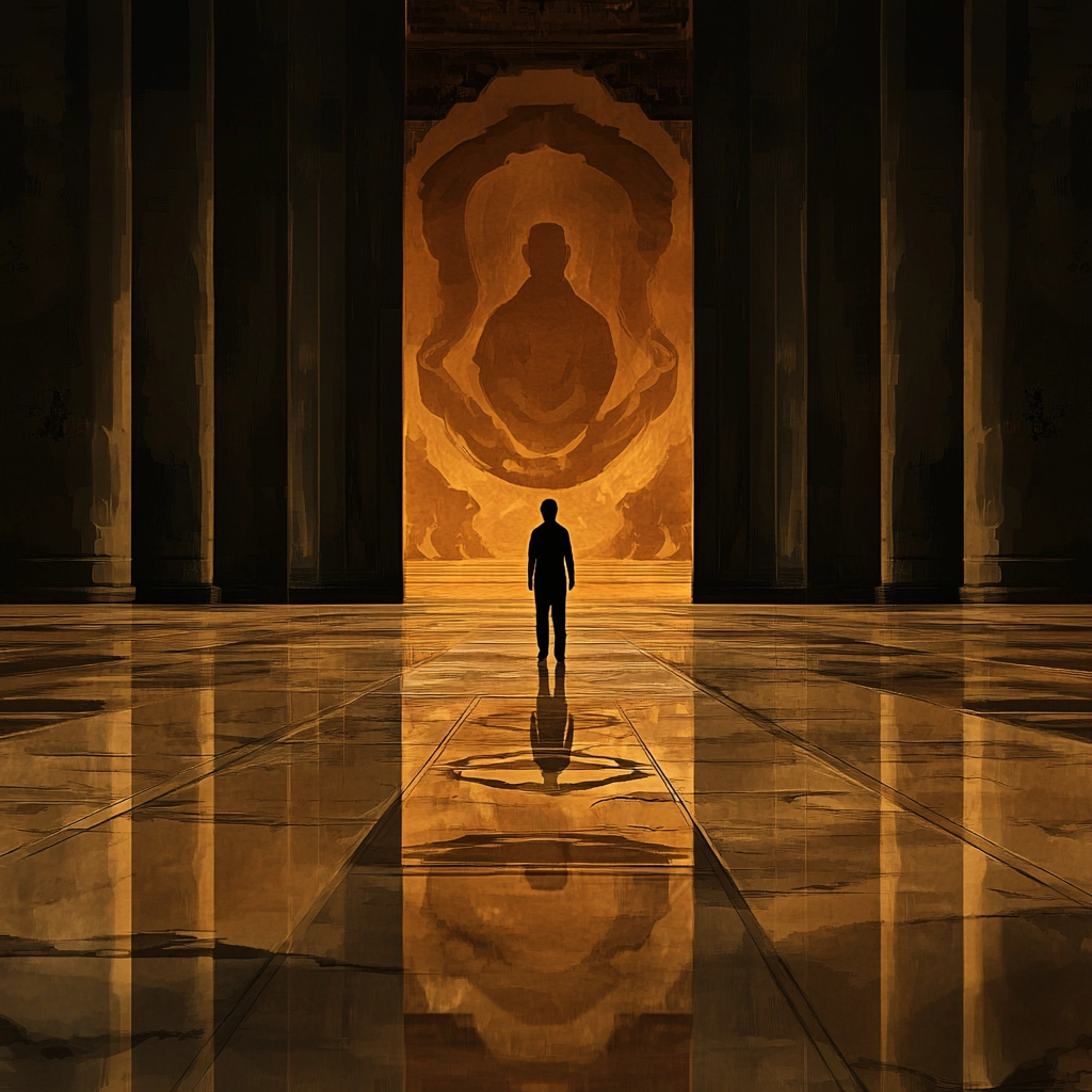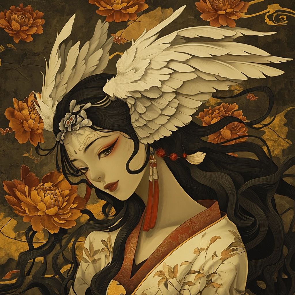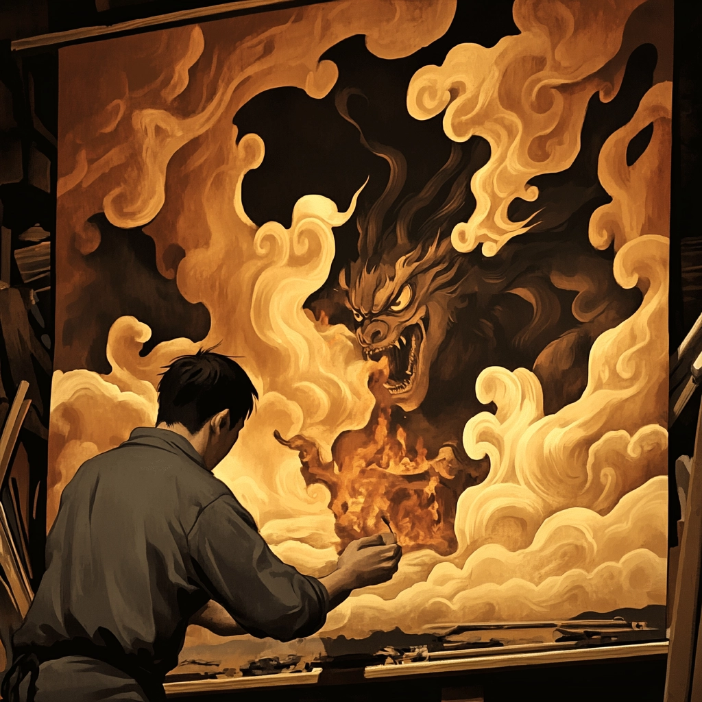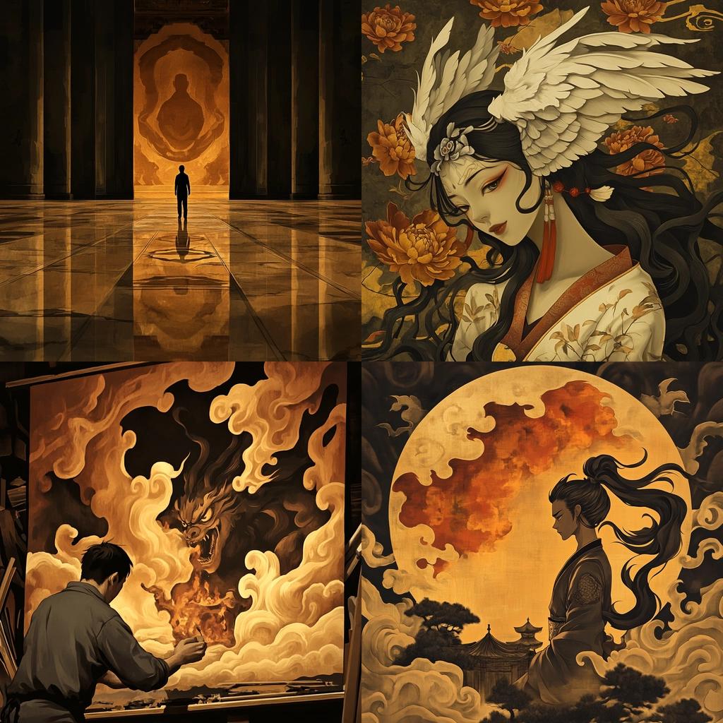 The composition blends rich earthy tones with intricate details, creating a harmonious balance between warm colors and complex design.