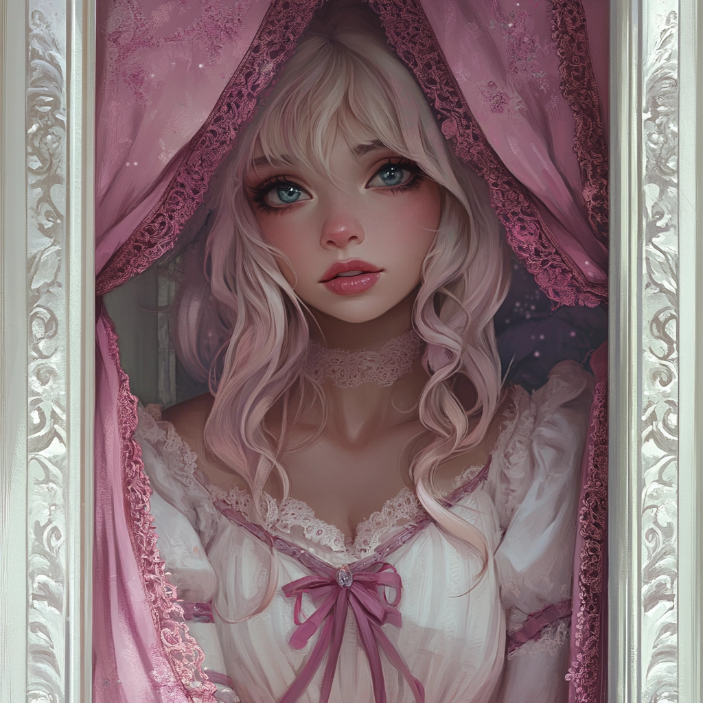Subtle lighting enhances the soft texture and intricate floral patterns, creating a gentle and harmonious composition with a balanced spatial distribution of elements.