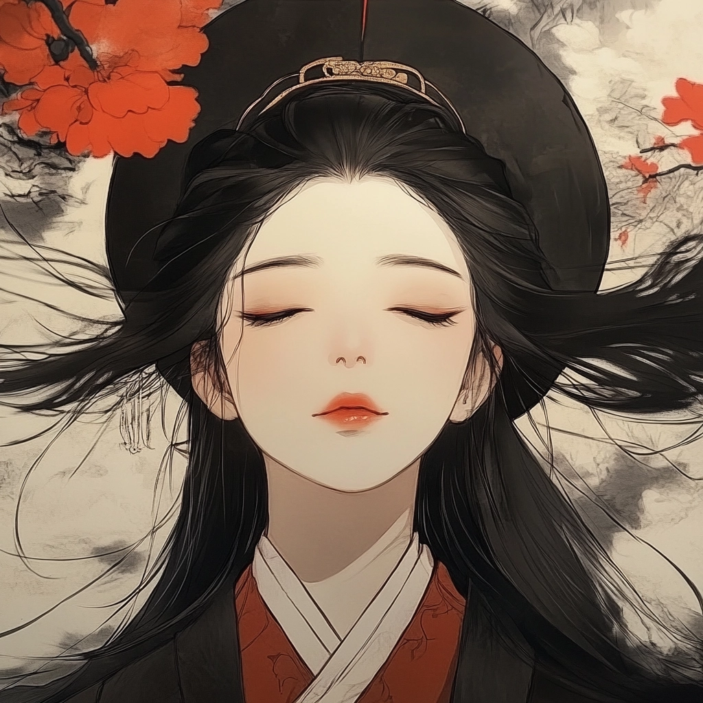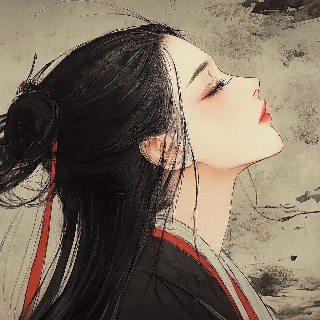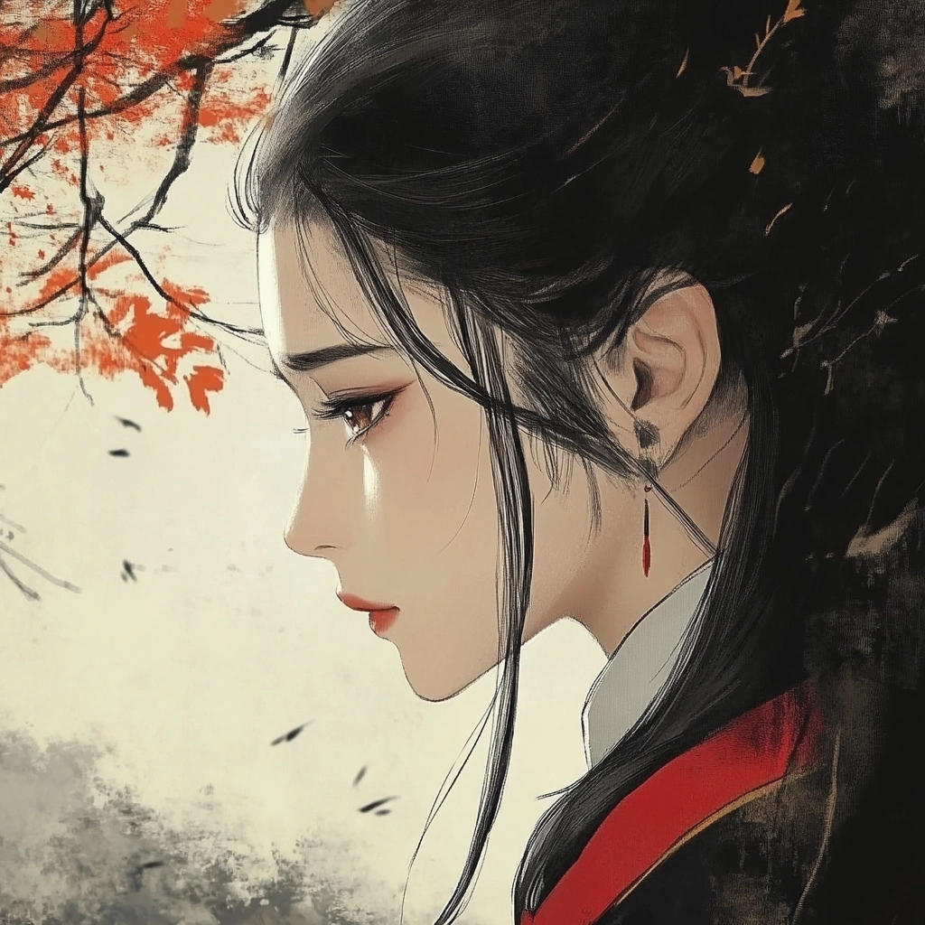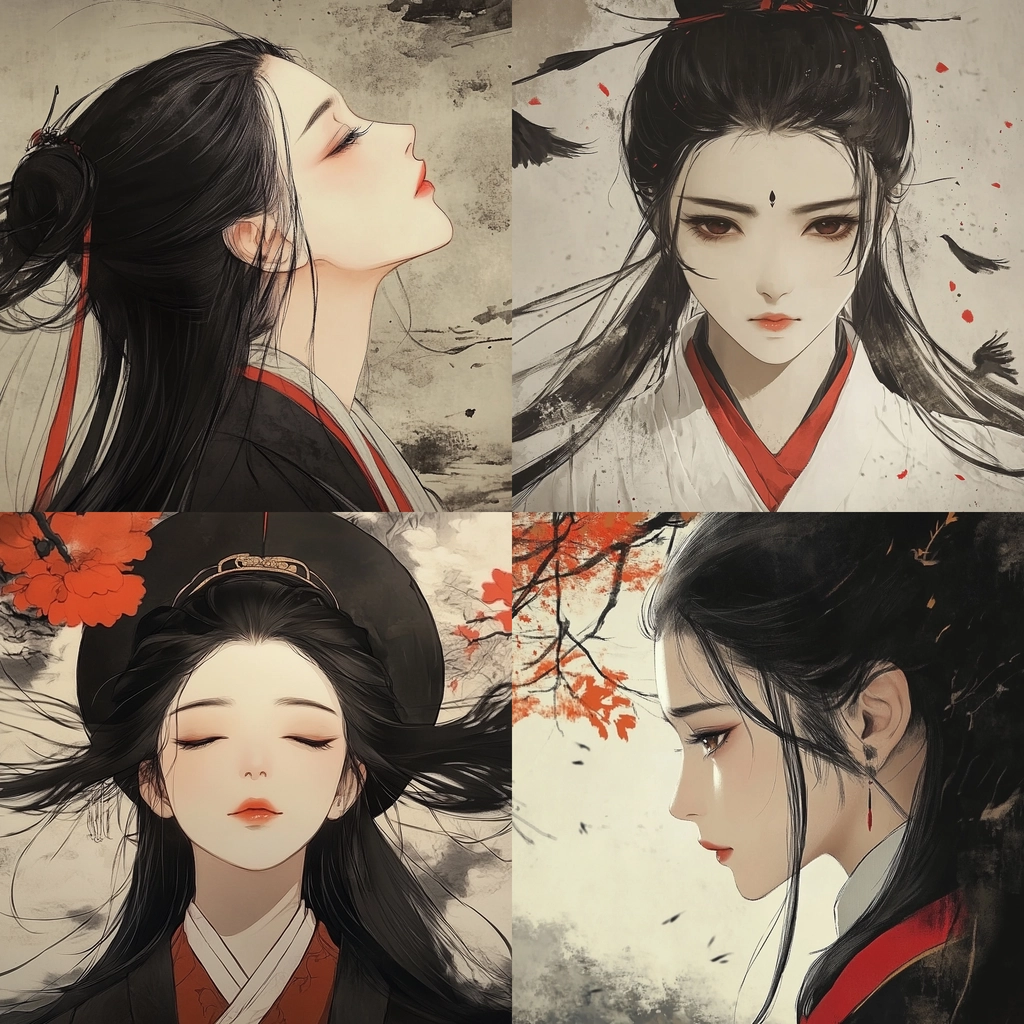 The artwork exhibits fluid ink-like strokes that convey motion, punctuated with vibrant red accents against a muted beige background. The balanced compositional flow and smooth texture expressions emphasize a natural, dynamic aesthetic.