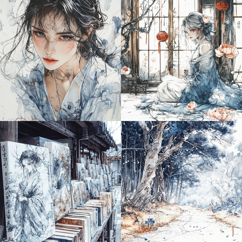 Utilizes gentle lighting effects to enhance subtle textures and create a soothing spatial ambiance, with a focus on fine, detailed brushwork that adds depth and complexity to the color scheme. The fluidity of watercolor is combined with precise control to render realistic, yet dream-like scenes.
