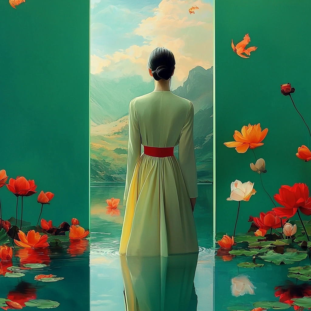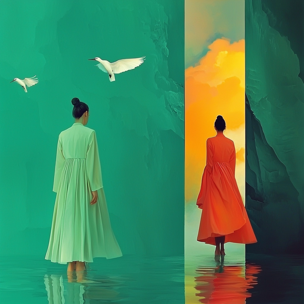 The lighting creates a harmonious ambiance, with soft gradients and smooth textures enhancing the visual depth. The spatial sense is defined by subtle contrasts and organic transitions, imparting a sense of continuity throughout.