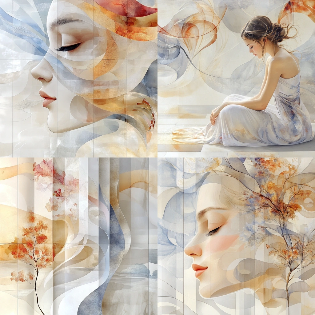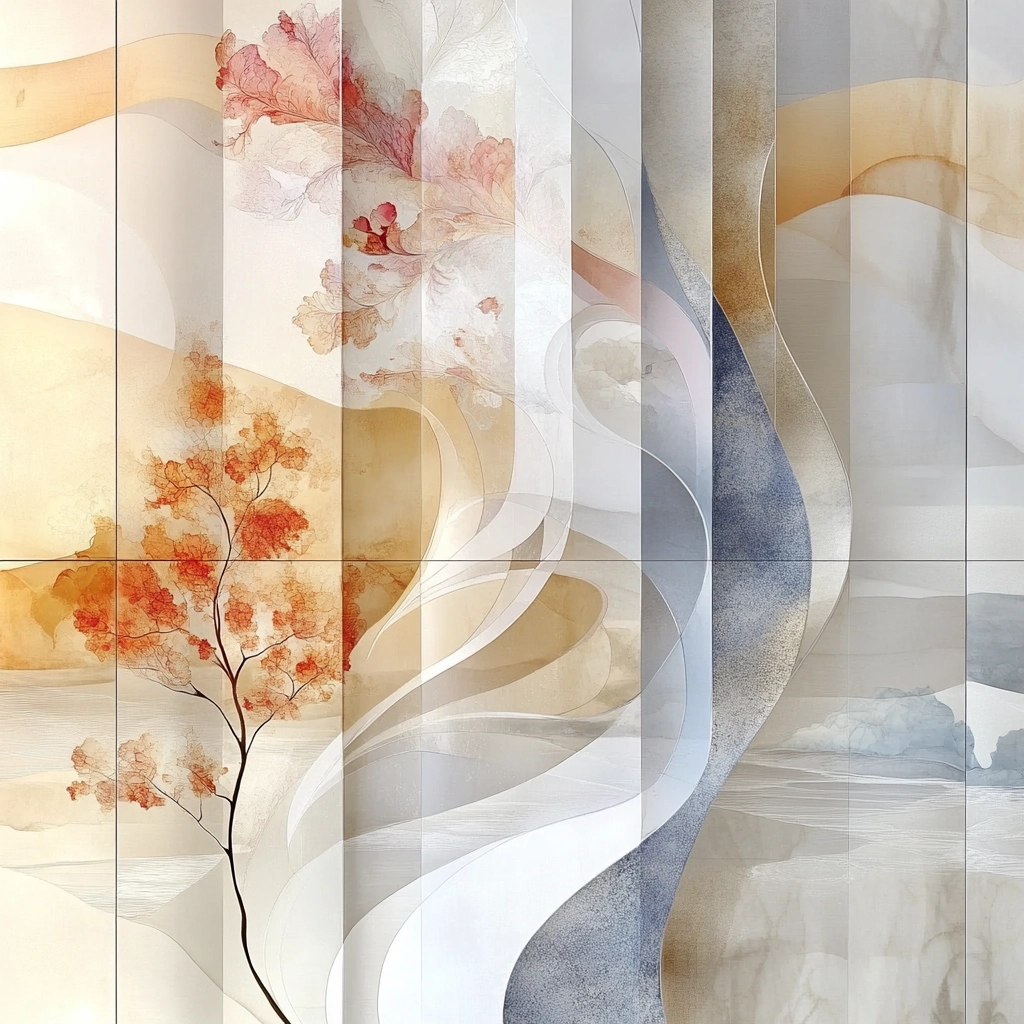 A harmonious blend of soft, flowing colors with delicate gradients.