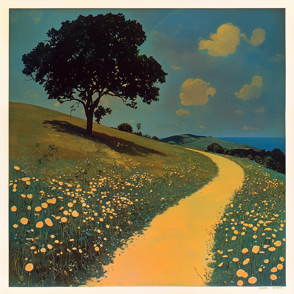 Vivid blue and gold create a starkly contrasting scene.