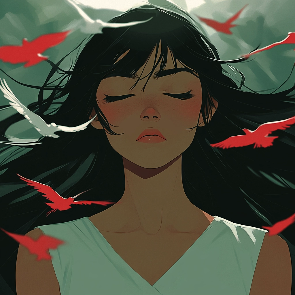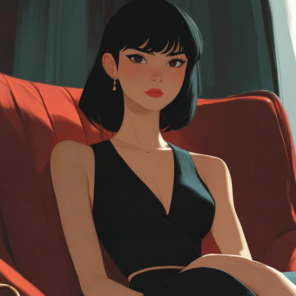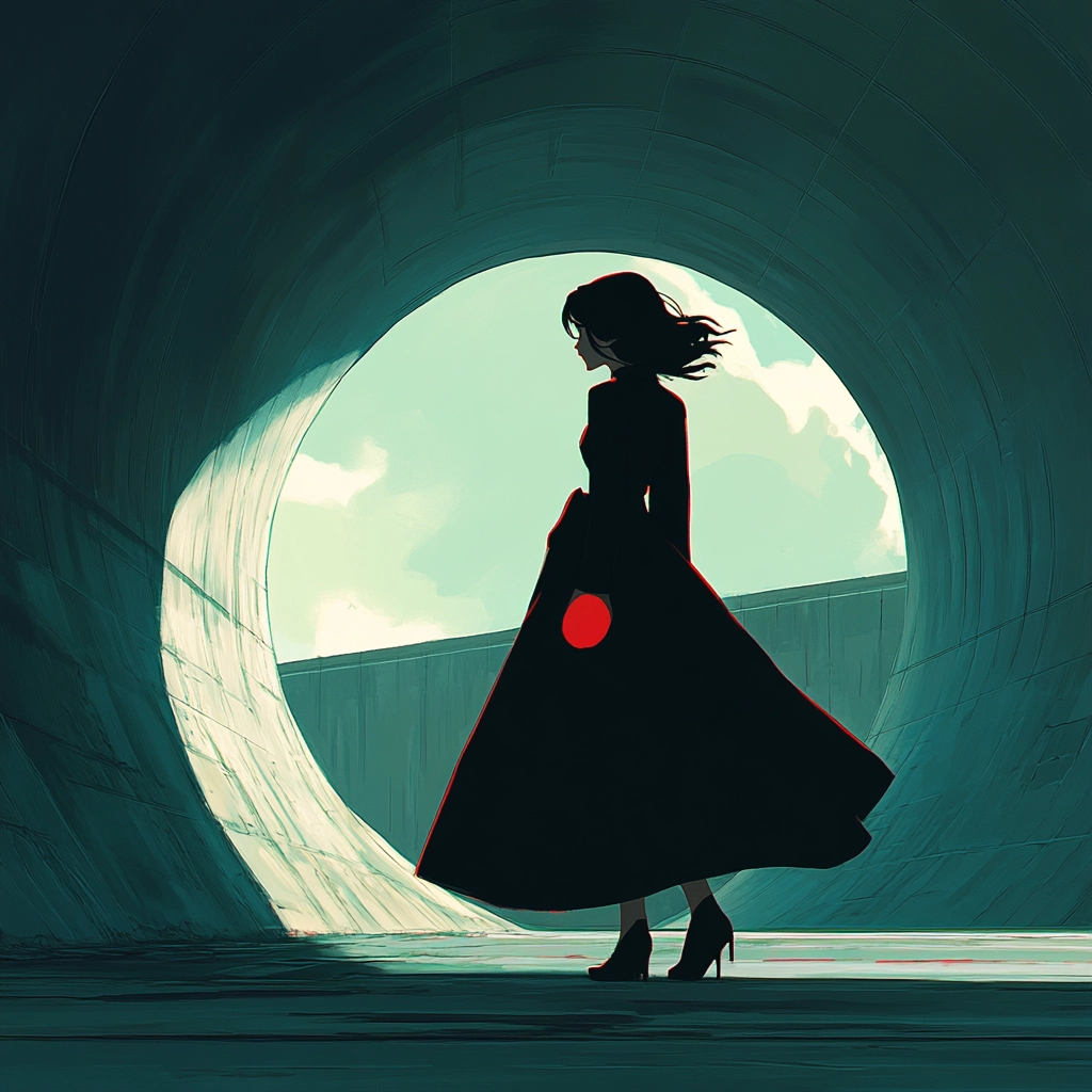 Lighting is precise and directional, defining forms with strong shadow edges and illuminated highlights. Color use is bold and selective, employing flat areas of saturated red and deep black against desaturated green backgrounds. Spatial organization emphasizes foreground-background contrast to establish depth, while texture remains smooth and polished, enhancing clean contours and flat color planes.