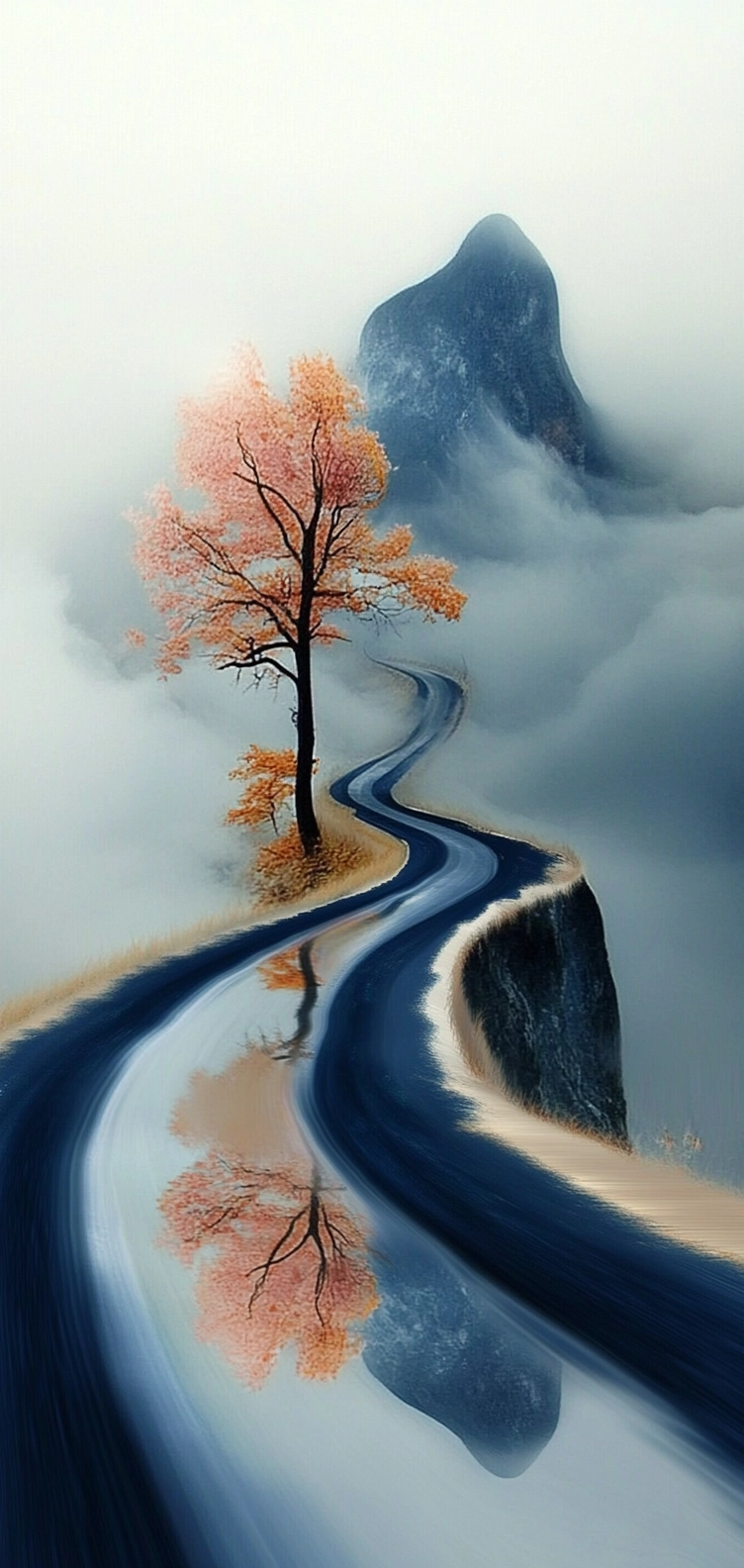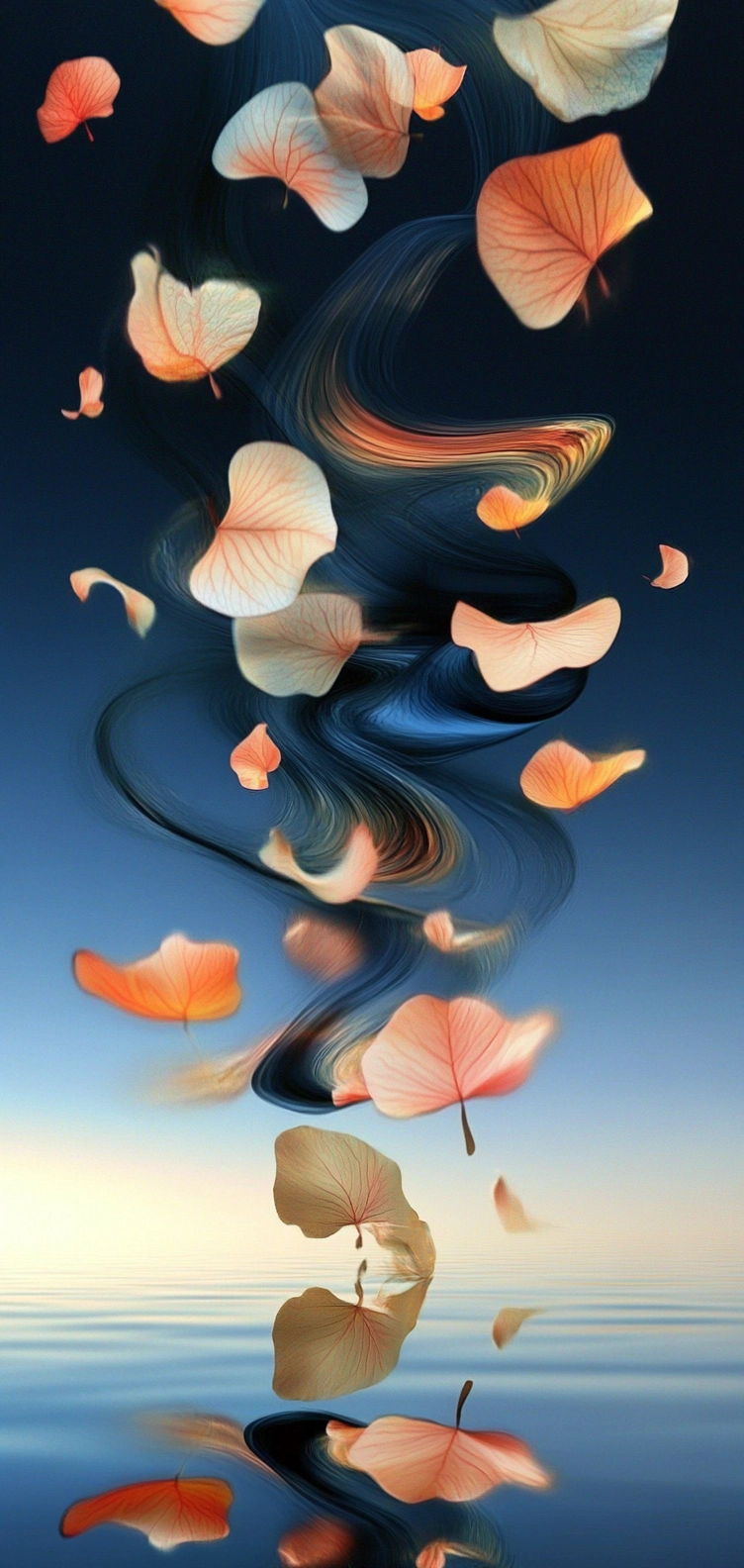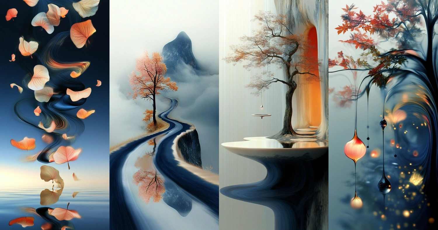 The lighting transitions smoothly, creating a sense of depth and enigma. Colors flow seamlessly, with subtle highlights and shadows enhancing the three-dimensional feel. Textures appear fluid and smooth, contributing to the overall illusion of motion and continuity.