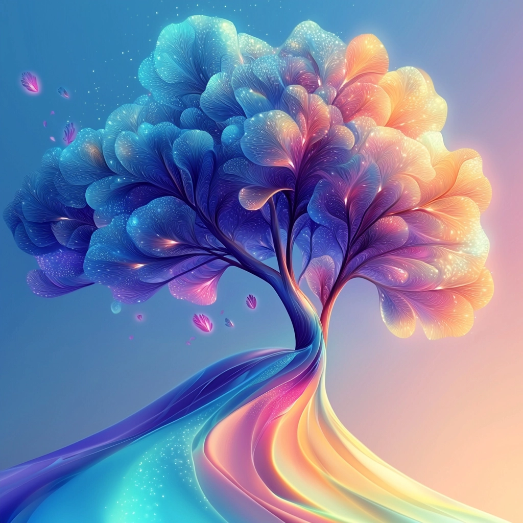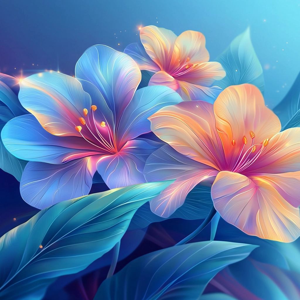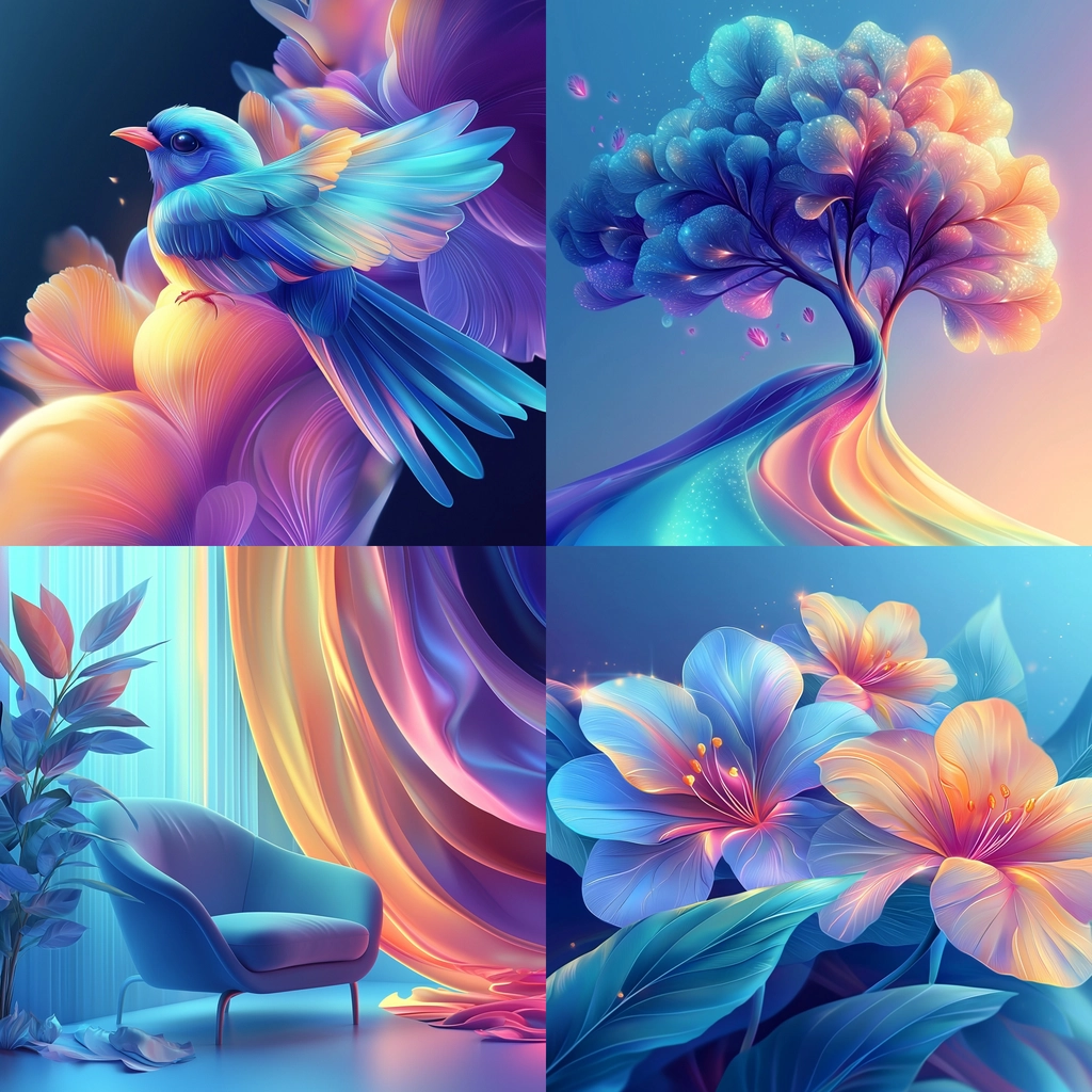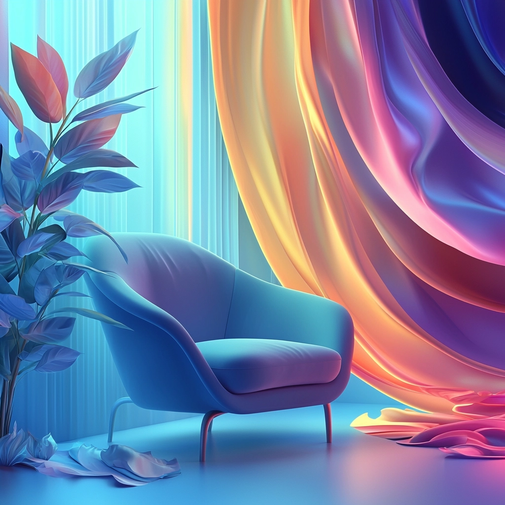 Vivid colors with smooth transitions and dynamic lighting create a flowing, textured visual experience.