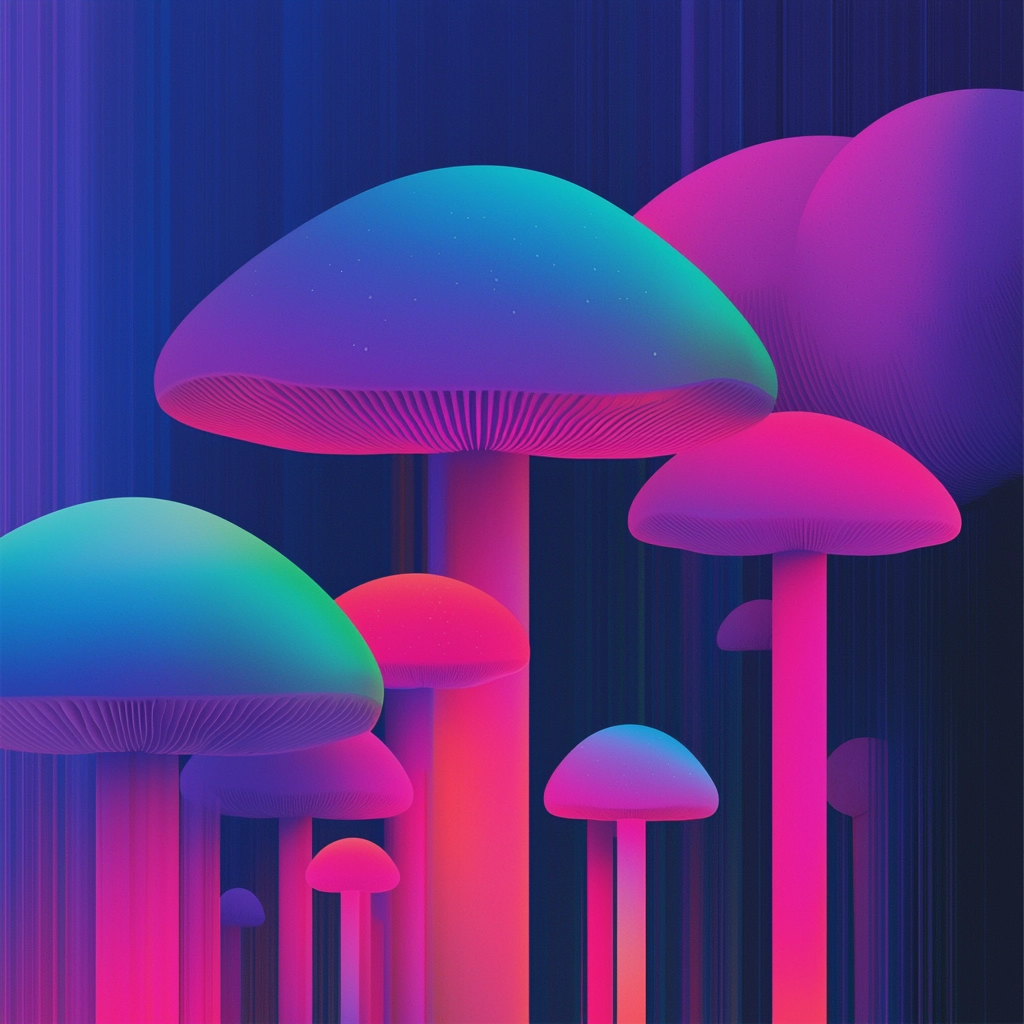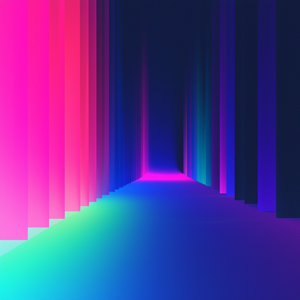 Vivid cyan and pink hues contrast against dark backdrops, creating a striking and immersive visual impact.