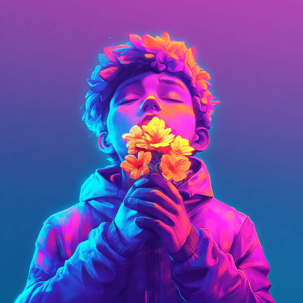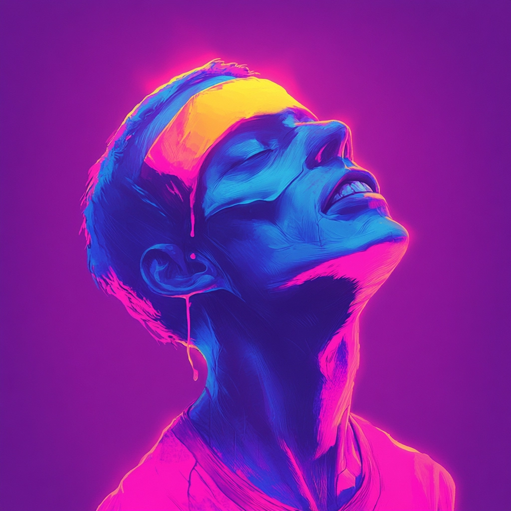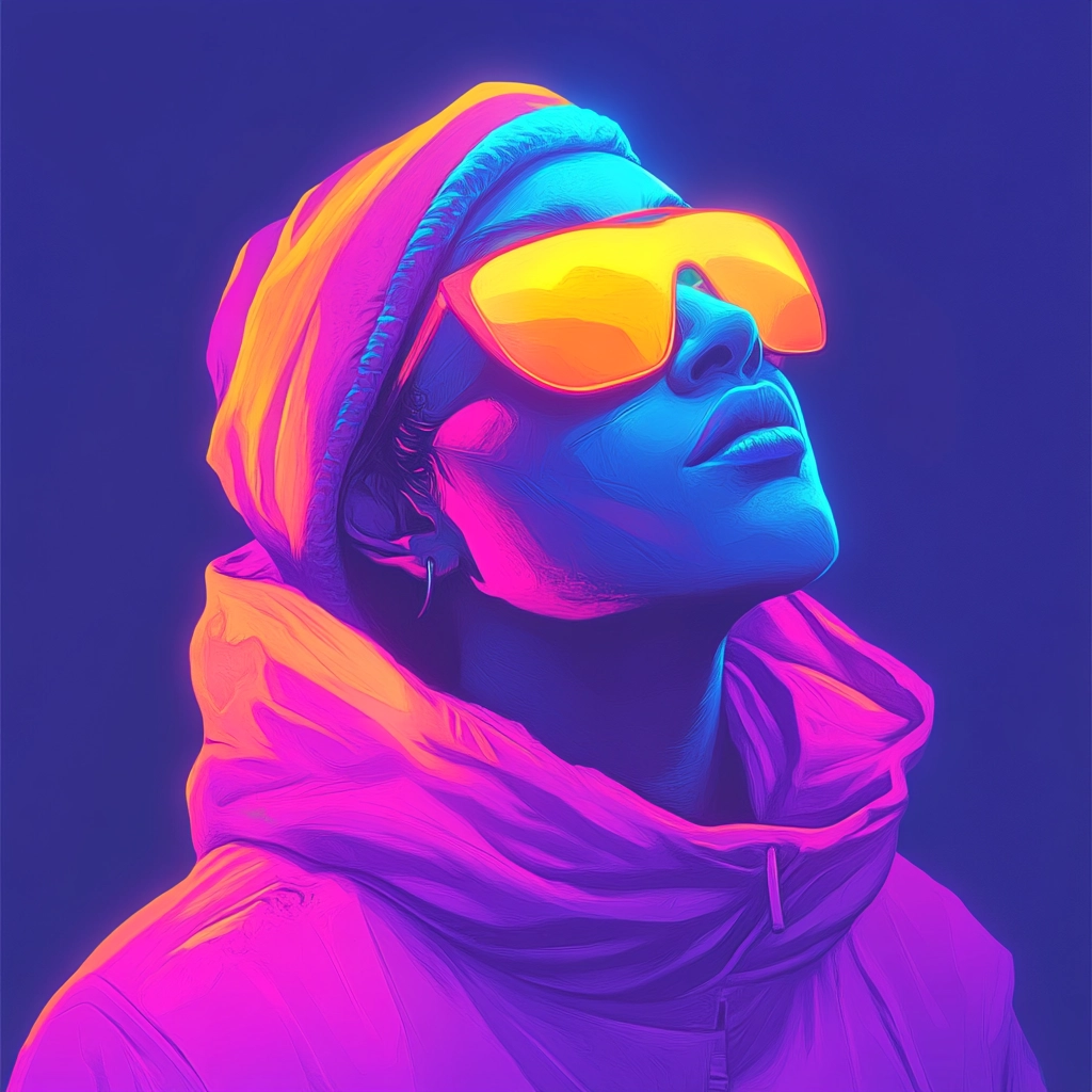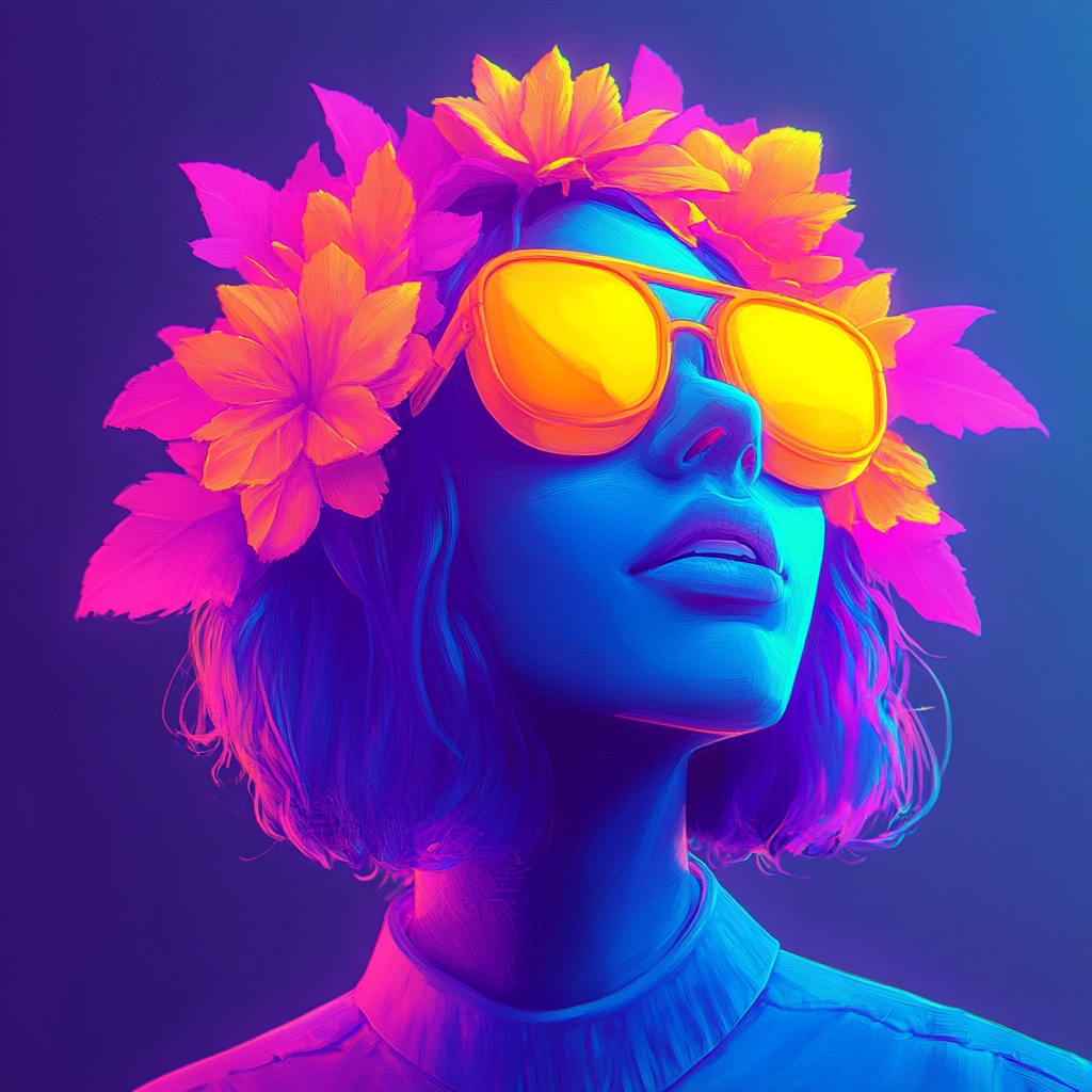 Dynamic lighting contrasts with soft shading, creating vibrant depth enhanced by intense fluorescent colors. The interplay of light and shade evokes a sculptural quality, with smooth gradients and crisp details adding to the dimensionality.