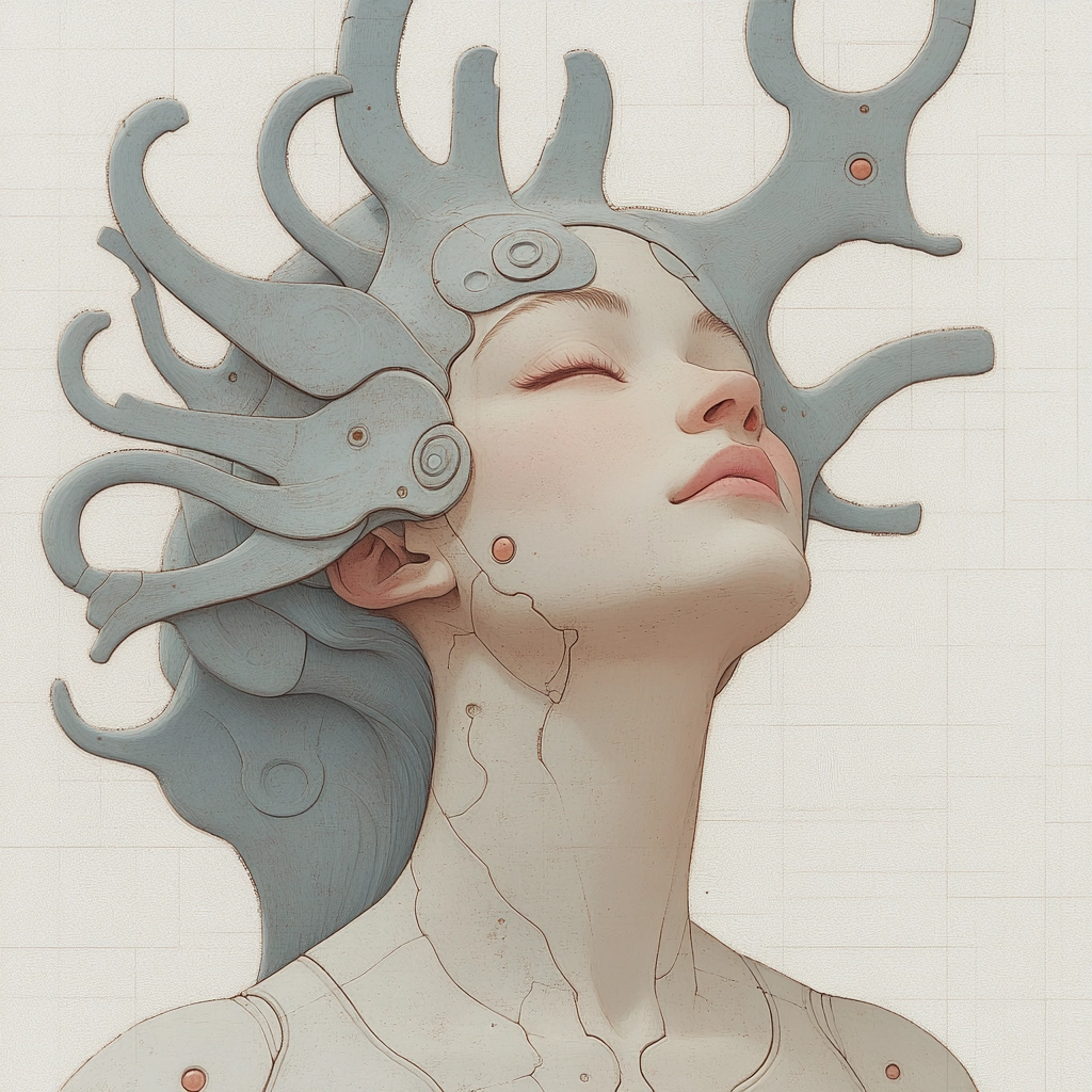 The composition features soft color tones and smooth transitions, with delicate lighting effects that highlight the detailed textures and emphasize a roundness in form, creating a subtle spatial depth.