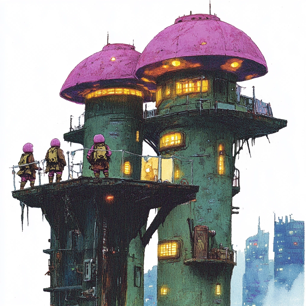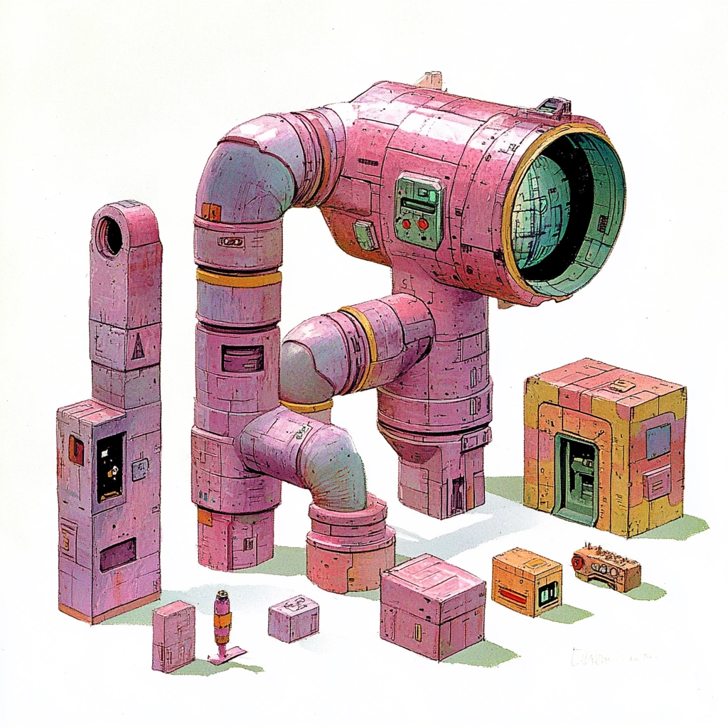 The lighting accentuates the detailed, textured surfaces with a contrast between natural and industrial elements. Strategic use of color enhances spatial awareness, and textures are carefully rendered to highlight varying material qualities.