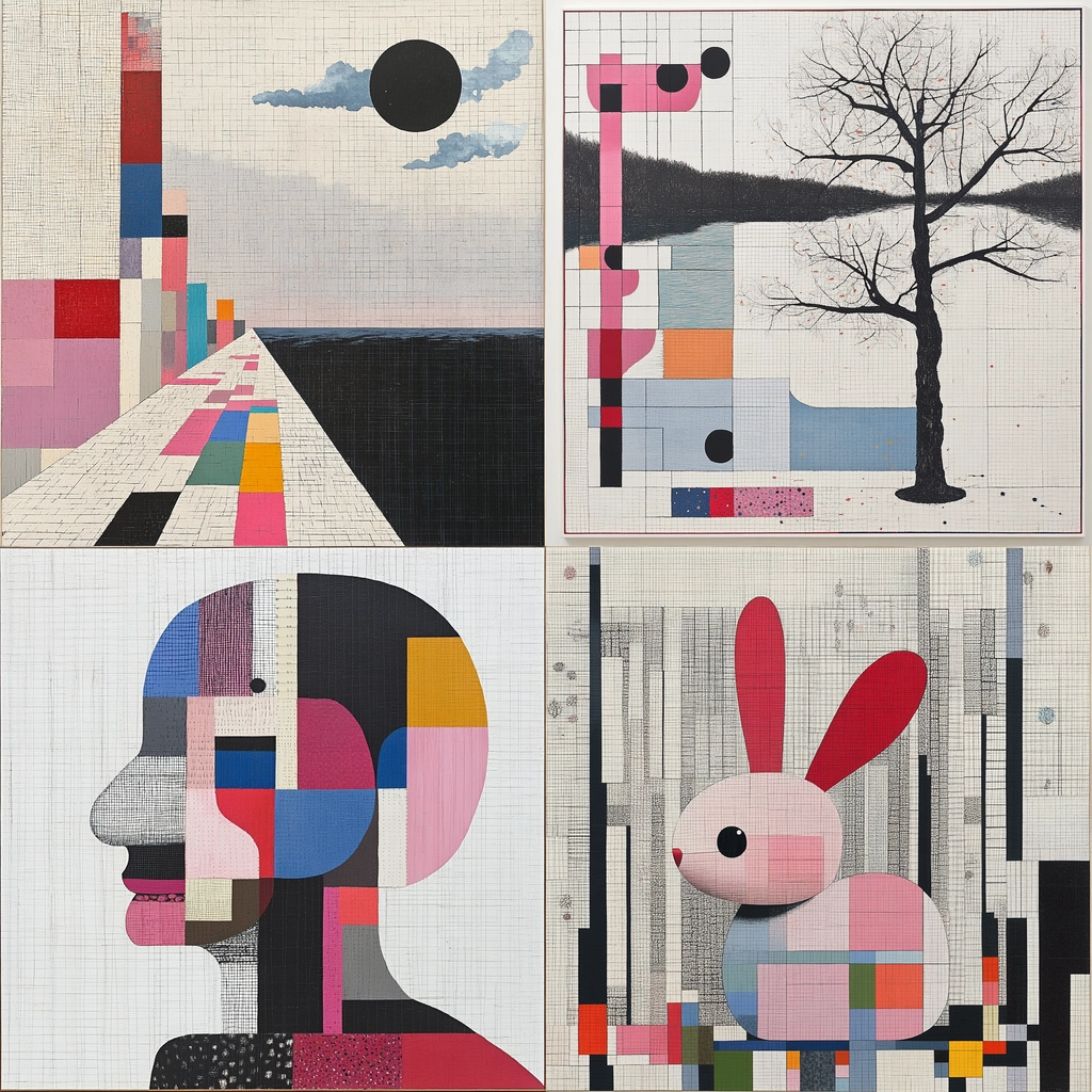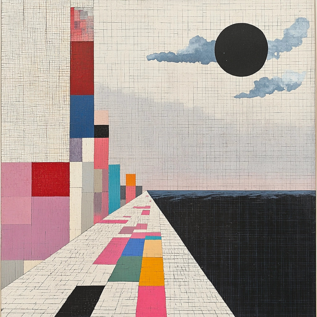The use of contrasting hues as dominant visual elements highlights the structured composition, creating a sense of order. The textures appear smooth with clear divisions, and the play of light and shadow elevates color vibrancy, enhancing visual dynamics.