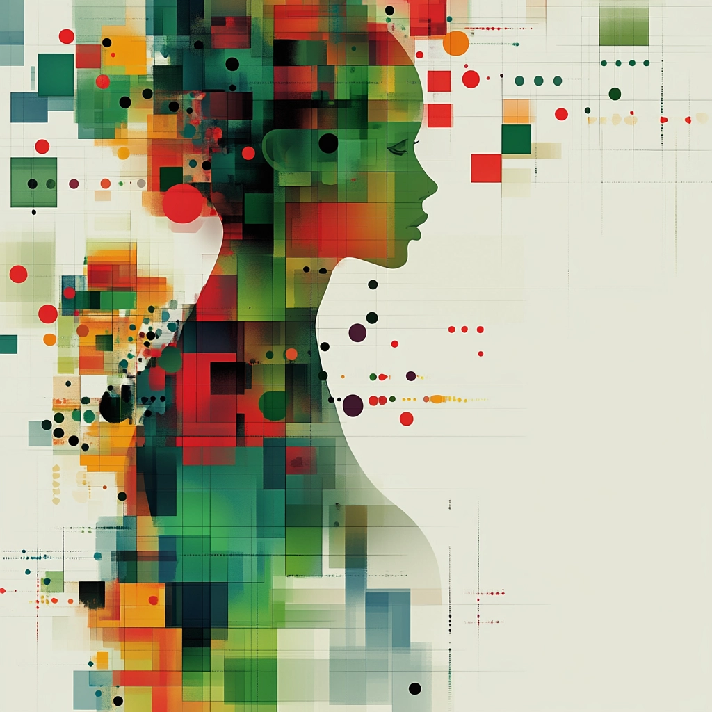 Juxtaposition of vibrant squares and circles giving dynamic balance.