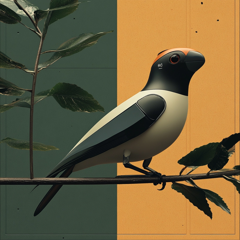 The composition features bold geometric shapes and vibrant contrasting colors, creating a sense of modernity and precision.