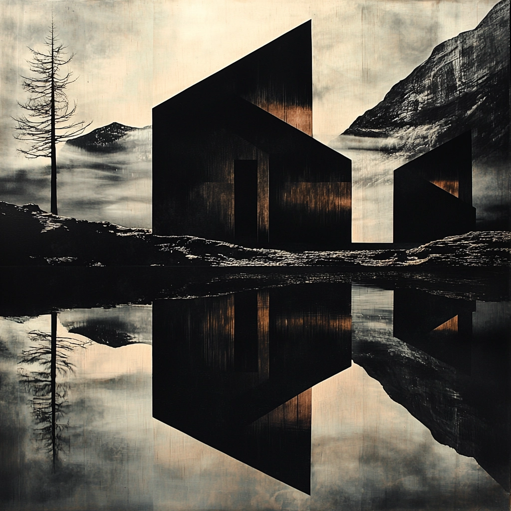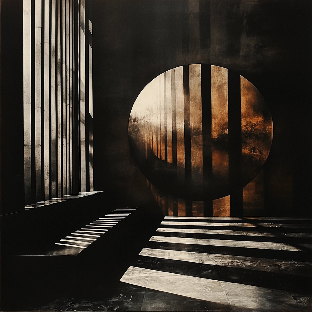 Bold use of geometric forms, light contrast, and reflection for a structured yet abstract visual impact.
