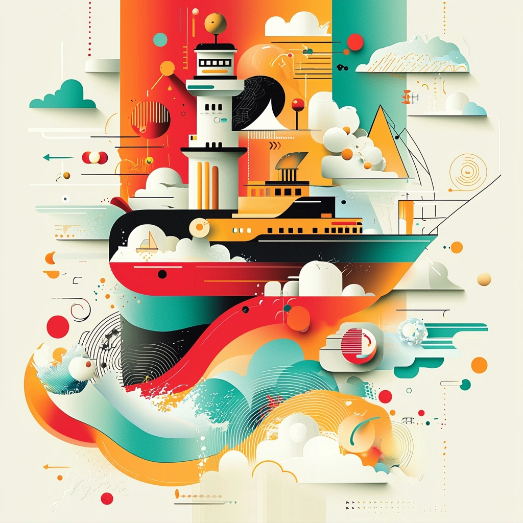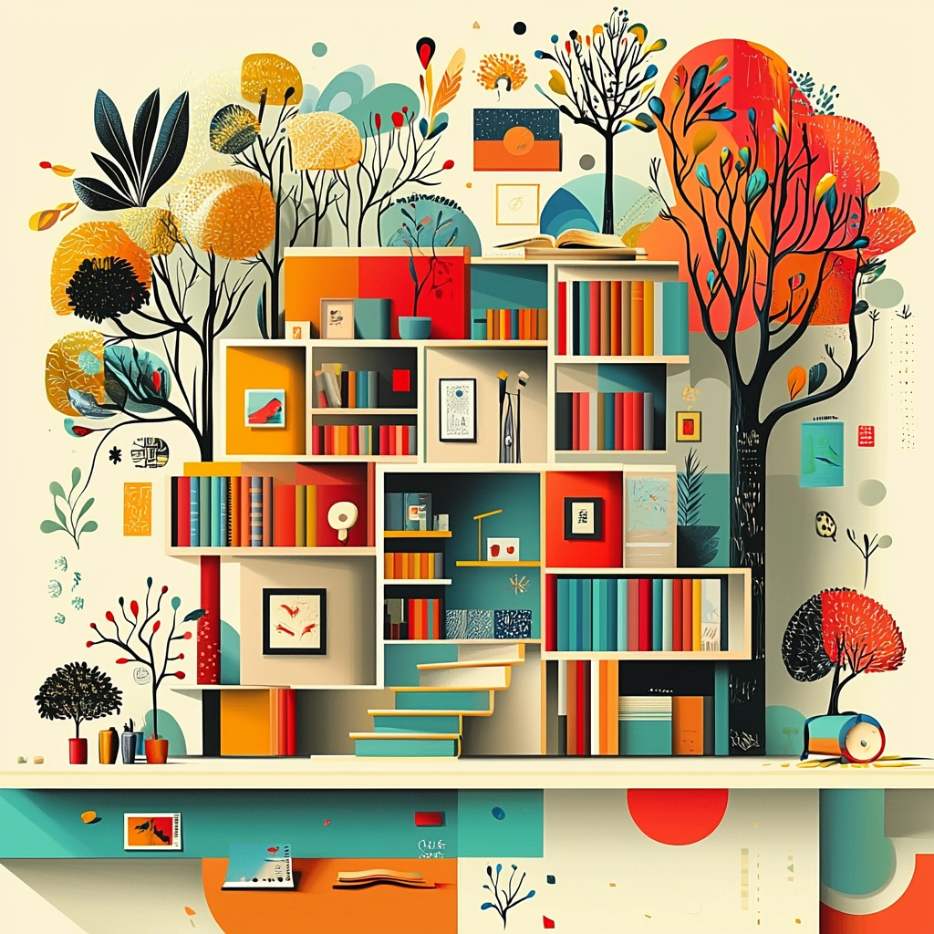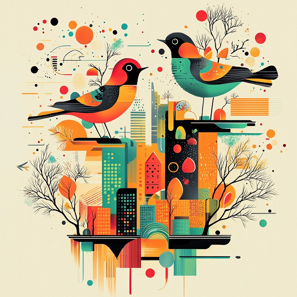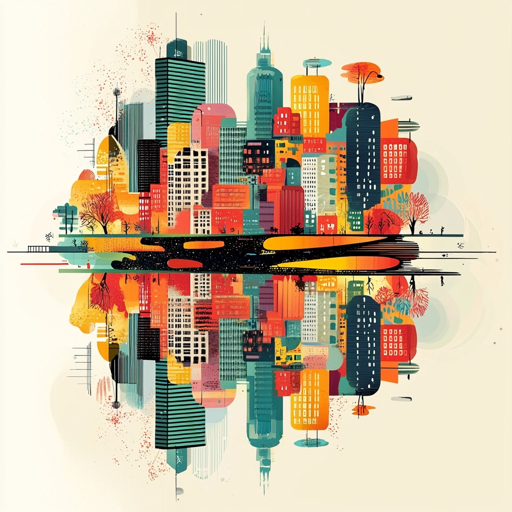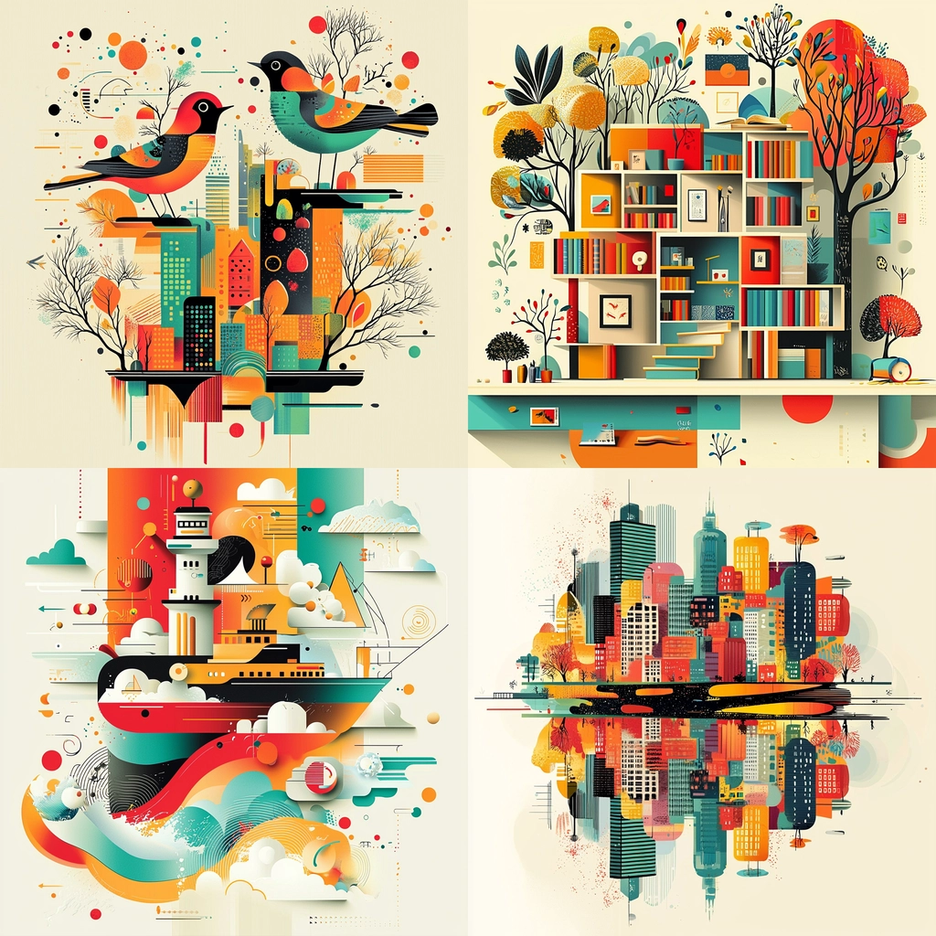 This style employs bold geometric shapes and intricate patterns, using bright and vibrant hues. The colors are distinctly separated, with smooth gradients contributing to a dynamic visual effect. The sense of depth is enhanced by layering elements strategically.