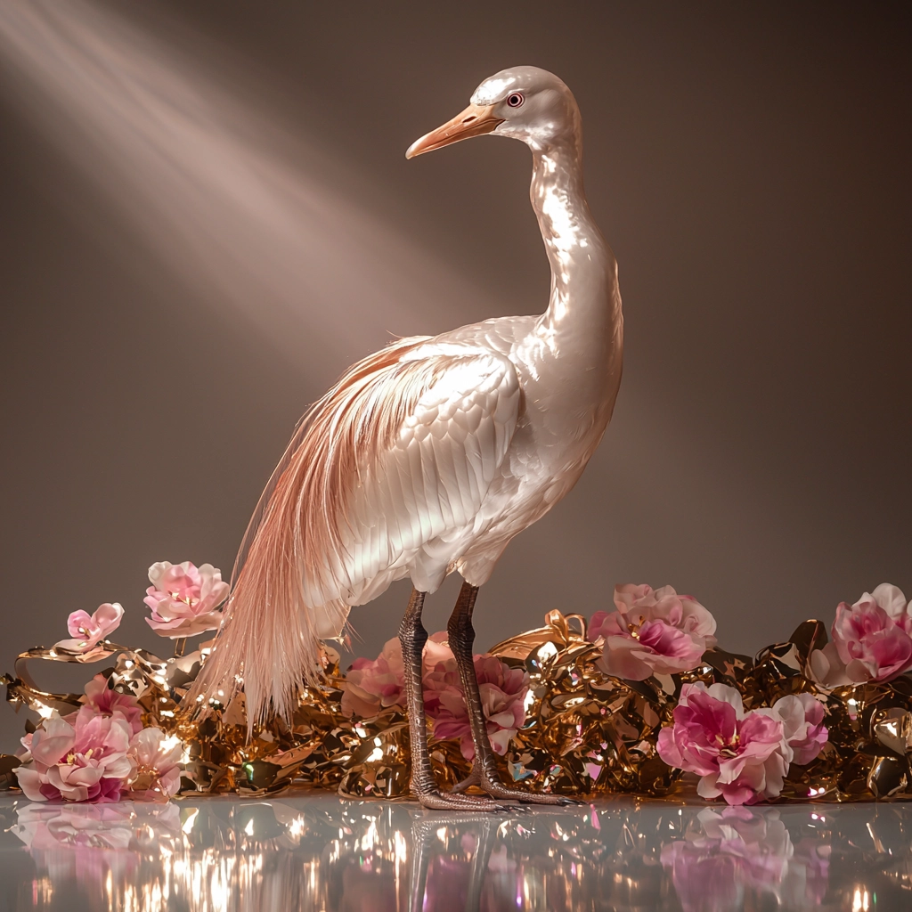 Reflective surfaces with soft radiant lighting highlight intricate details and delicate features.