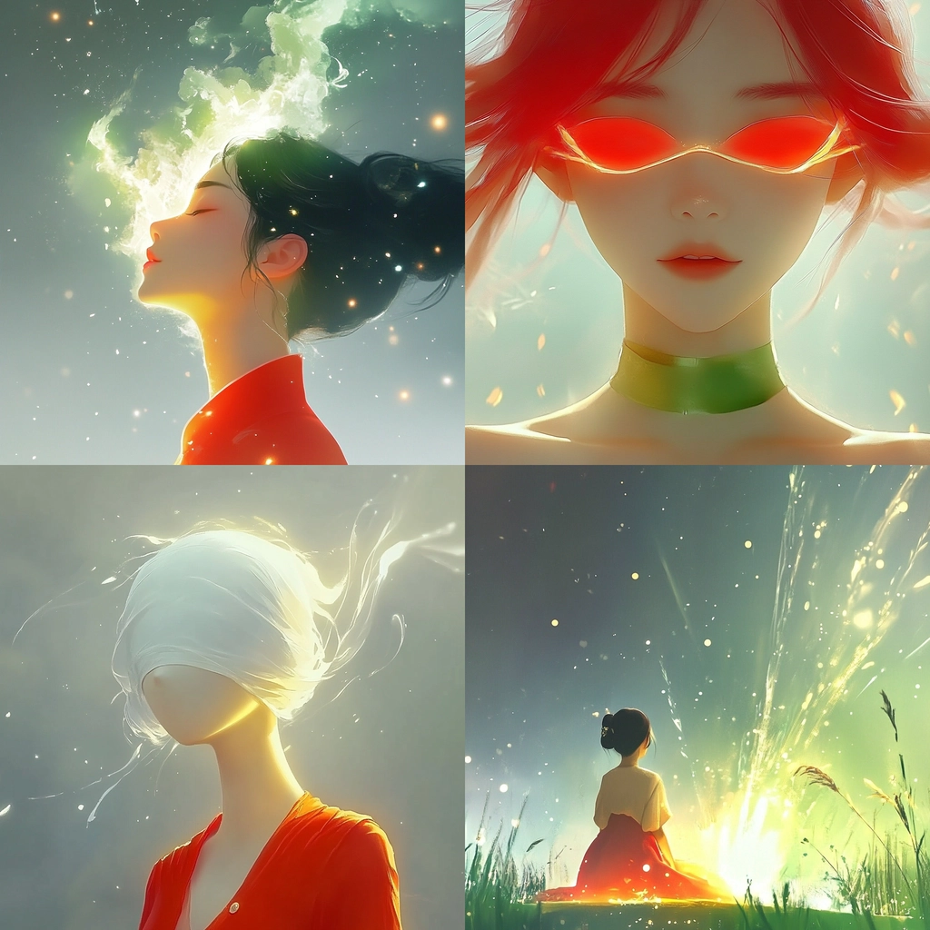The use of glowing lighting effects emphasizes the textures and spatial depth, creating dynamic contrasts between the colors. The meticulous rendering of light and shadow blends seamlessly with flowing textures, enhancing the vividness and creating an immersive visual experience.
