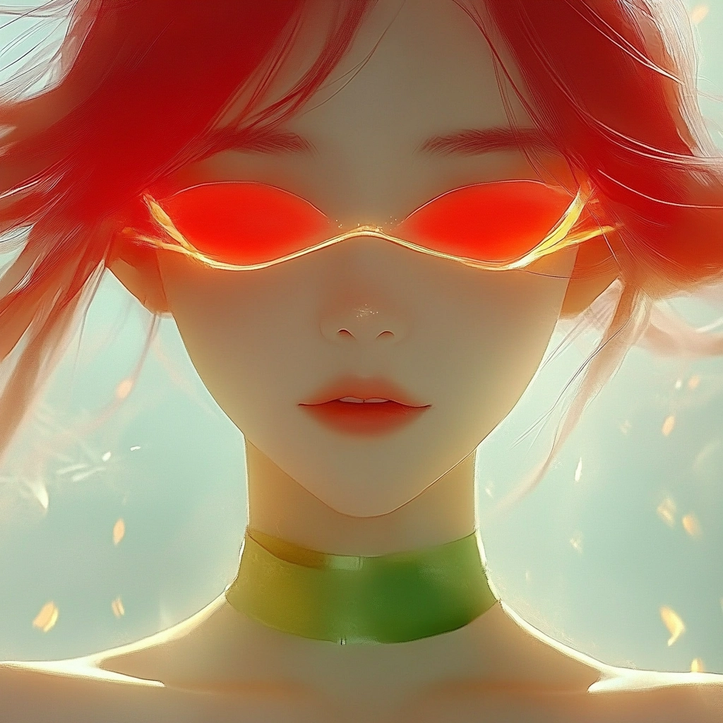 Vivid reds and greens highlighted with glowing lighting effects create a striking composition.
