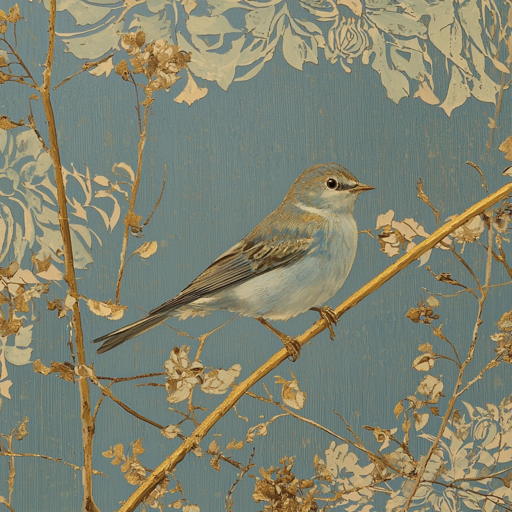 The scene employs cool blue hues with striking gold accents to create a detailed, naturalistic representation.