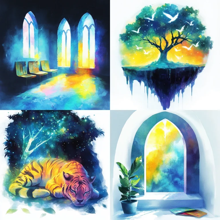 The interplay of light effects creates strong contrasts that define forms and textures. The gold elements introduce warmth against the smooth, dark blue surfaces, manipulating spatial perceptions with depth and flatness.