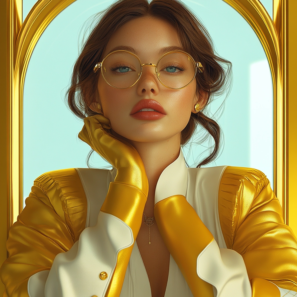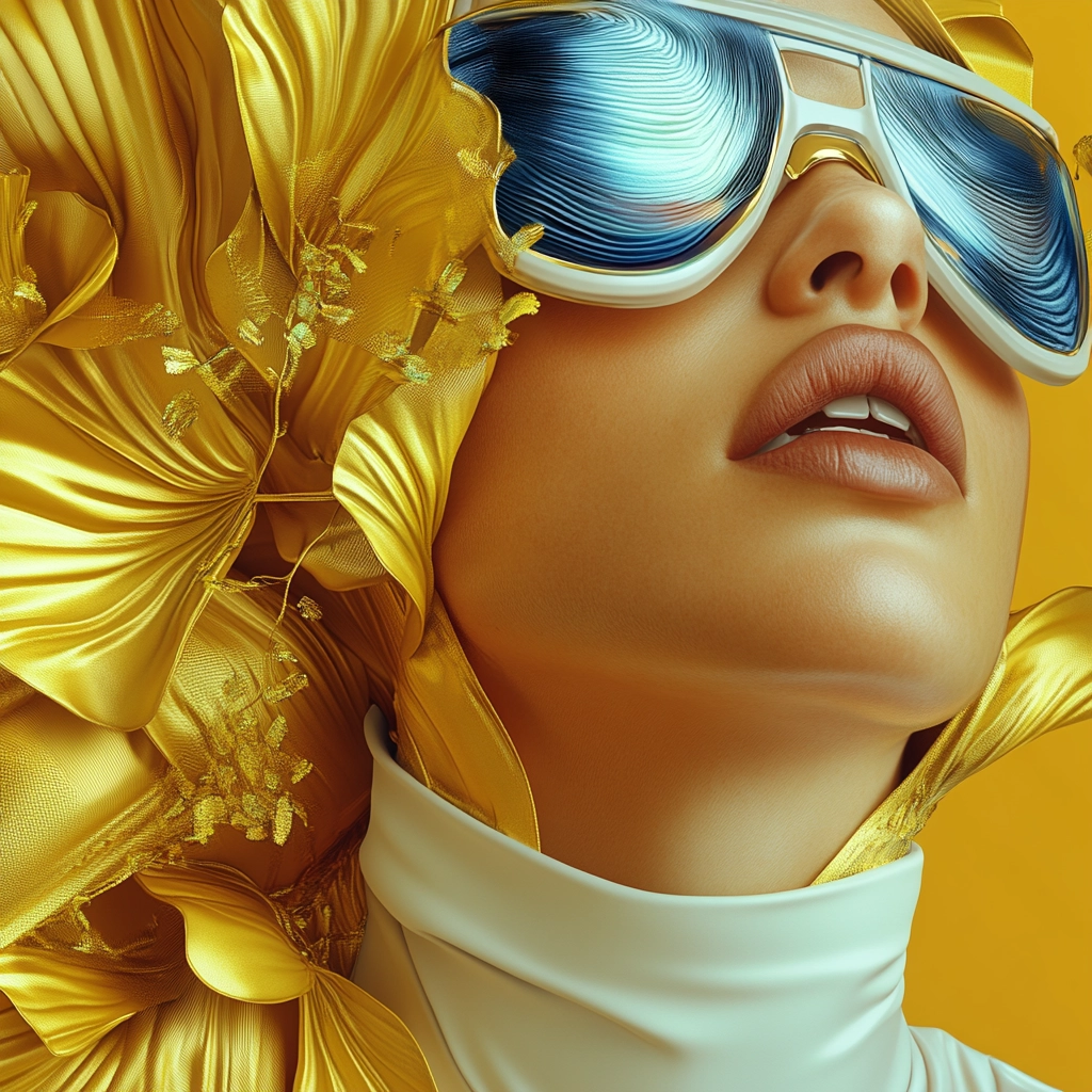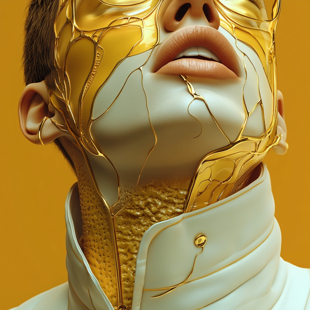 A striking interplay of gold and white with refined textures and vivid contrasts.