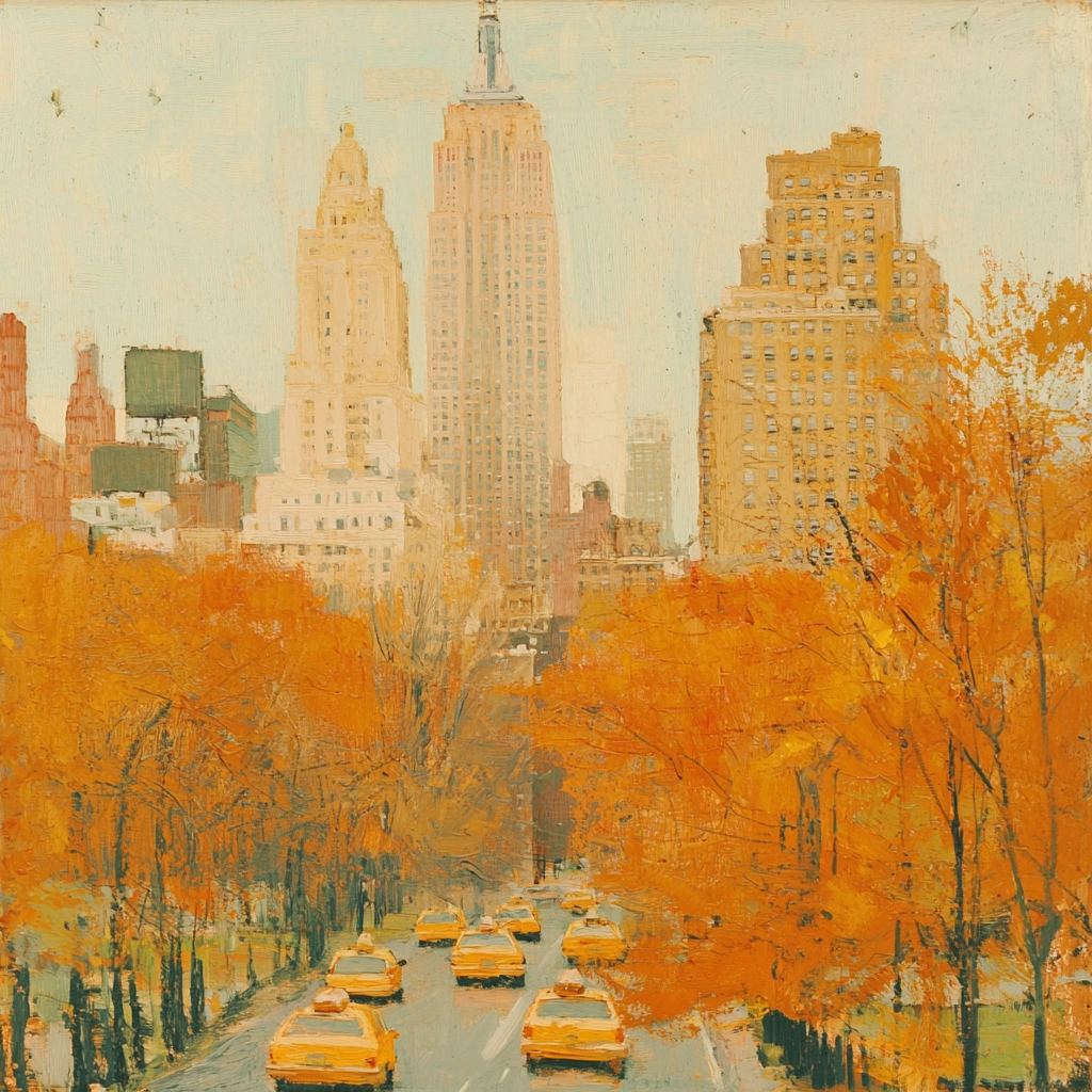 Bold strokes and warm hues highlight a fall theme.