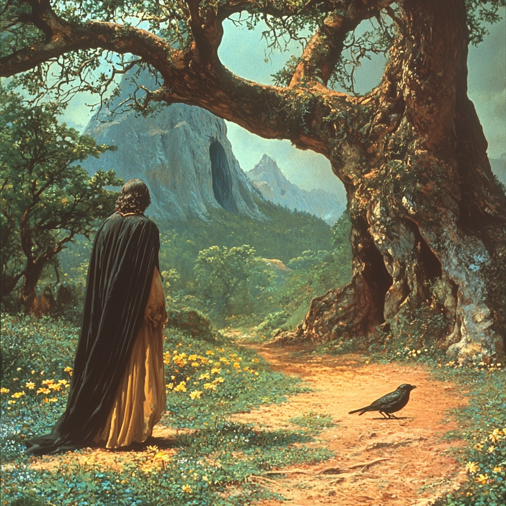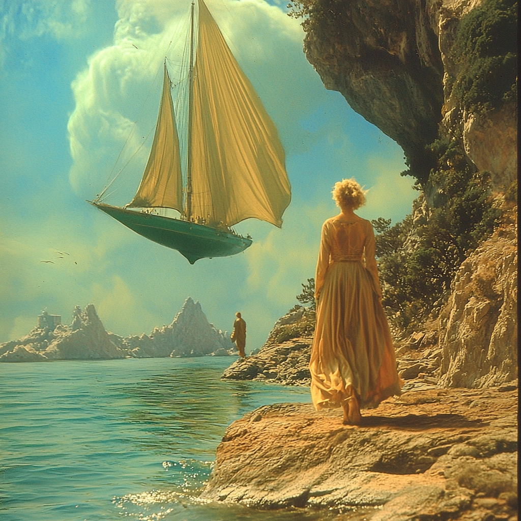 A blend of warm gold tones with cool cyan hues creating expansive, luminous scenes.